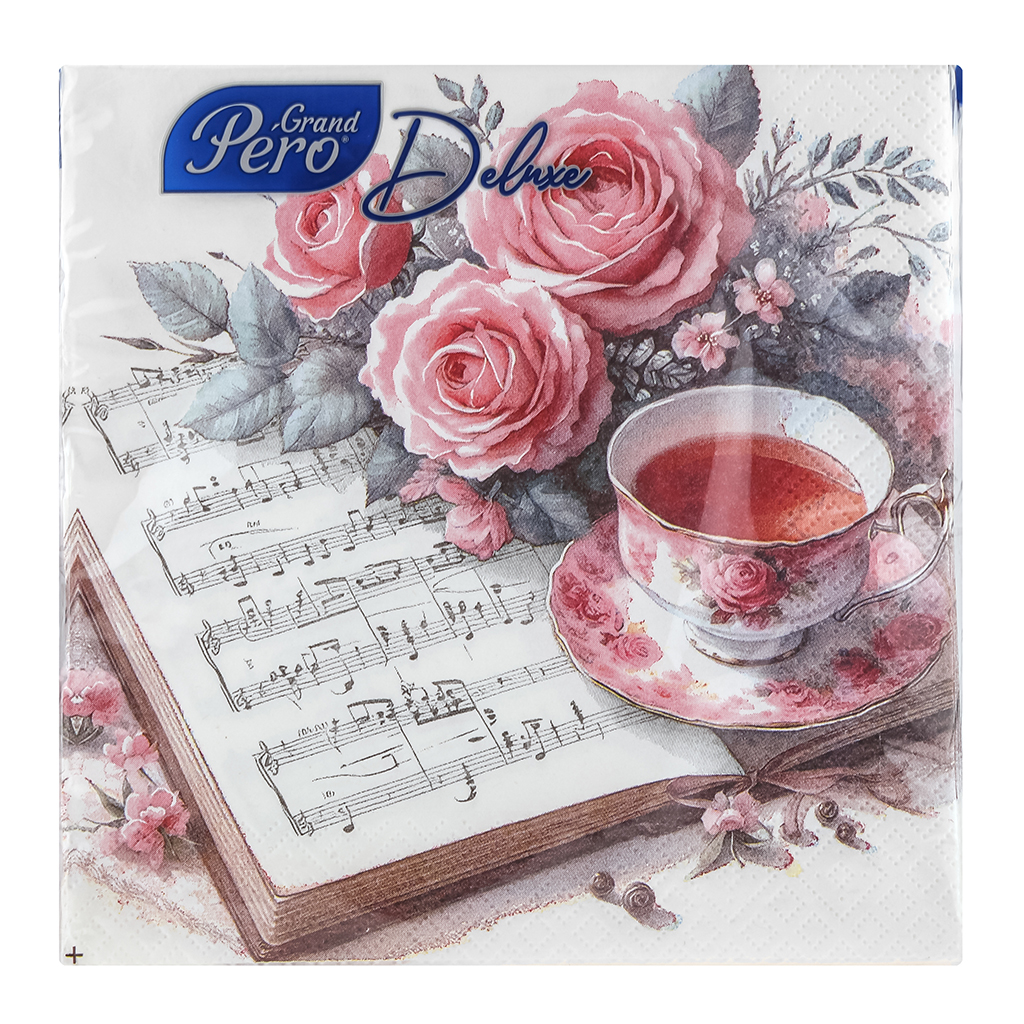 Салфетки бумажные 33х33см "GrandPero Deluxe", 3-х слойные, 20 штук в упаковке, "Ноктюрн" (Россия), 171429, купить в Грант СПБ