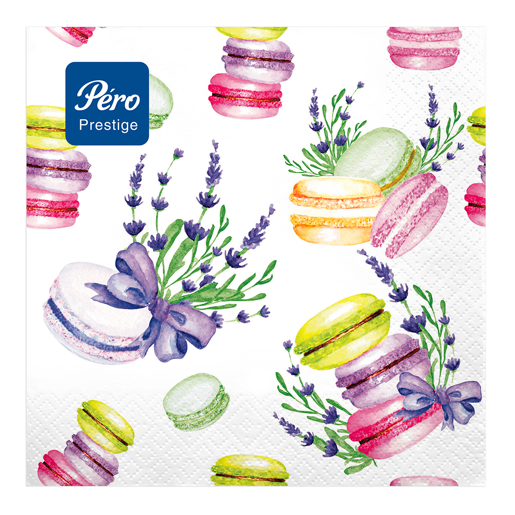 Салфетки бумажные 33х33см "Pero Prestige", 3-х слойные, 20 штук в упаковке, "Макаронсы" (Россия), 171427