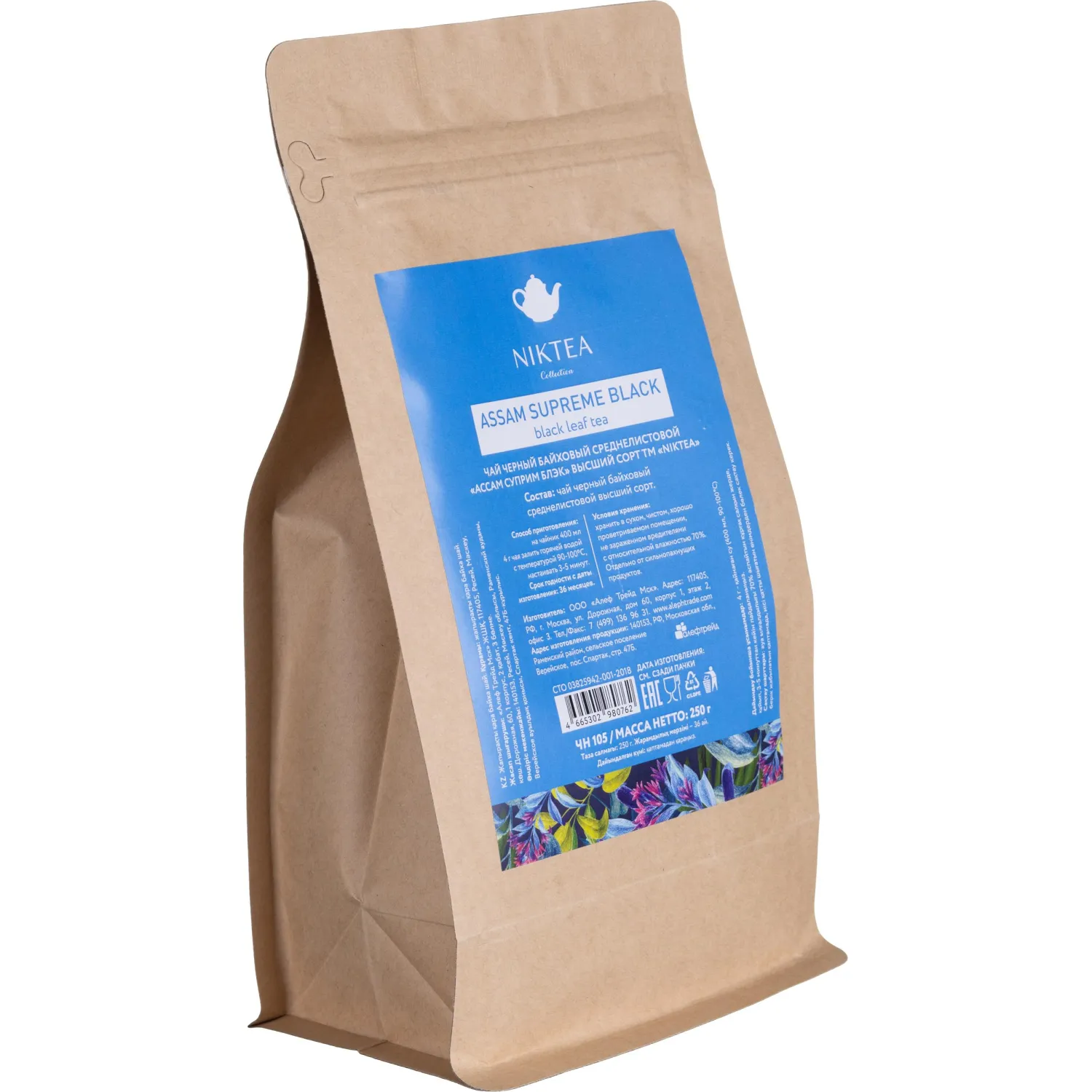 Чай Niktea Assam Supreme Black черный 250 г. Niktea Assam Supreme Black - традиционный черный чай из Индии. Исключительно насыщенный во вкусе, с сильным ароматом и солодовыми оттенками. NikTea следует правилу качество чая - это отражение качества жизни и гарантирует: Тщательно подобранные рецептуры в коллекции топовых позиций-бестселлеров. Контролируемое производство и сертификацию по международным стандартам. Закупку сырья у надежных поставщиков в главных чаеводческих районах, а также в основных центрах тимэйкерской традиции - Германии и Голландии. Постоянство качества по строго утвержденным стандартам. Листовая коллекция NikTea представлена в герметичной фольгированной упаковке, которая эффективно предохраняет чай от воздействия света, влаги и посторонних запахов, обеспечивая длительное хранение. Каждая упаковка снабжена этикеткой с подробным описанием чая, его состава, а также способа заваривания. Состав: Чай черный байховый среднелистовой индийский высшего сорта. Вес: 250 г Тип упаковки: фольгированный пакет Условия хранения: хранить в сухом прохладном месте при относительной влажности воздуха не более 70%, в плотно закрытой упаковке. Страна производства: Россия.