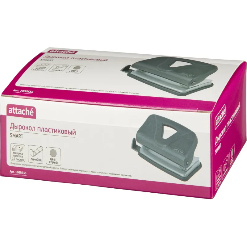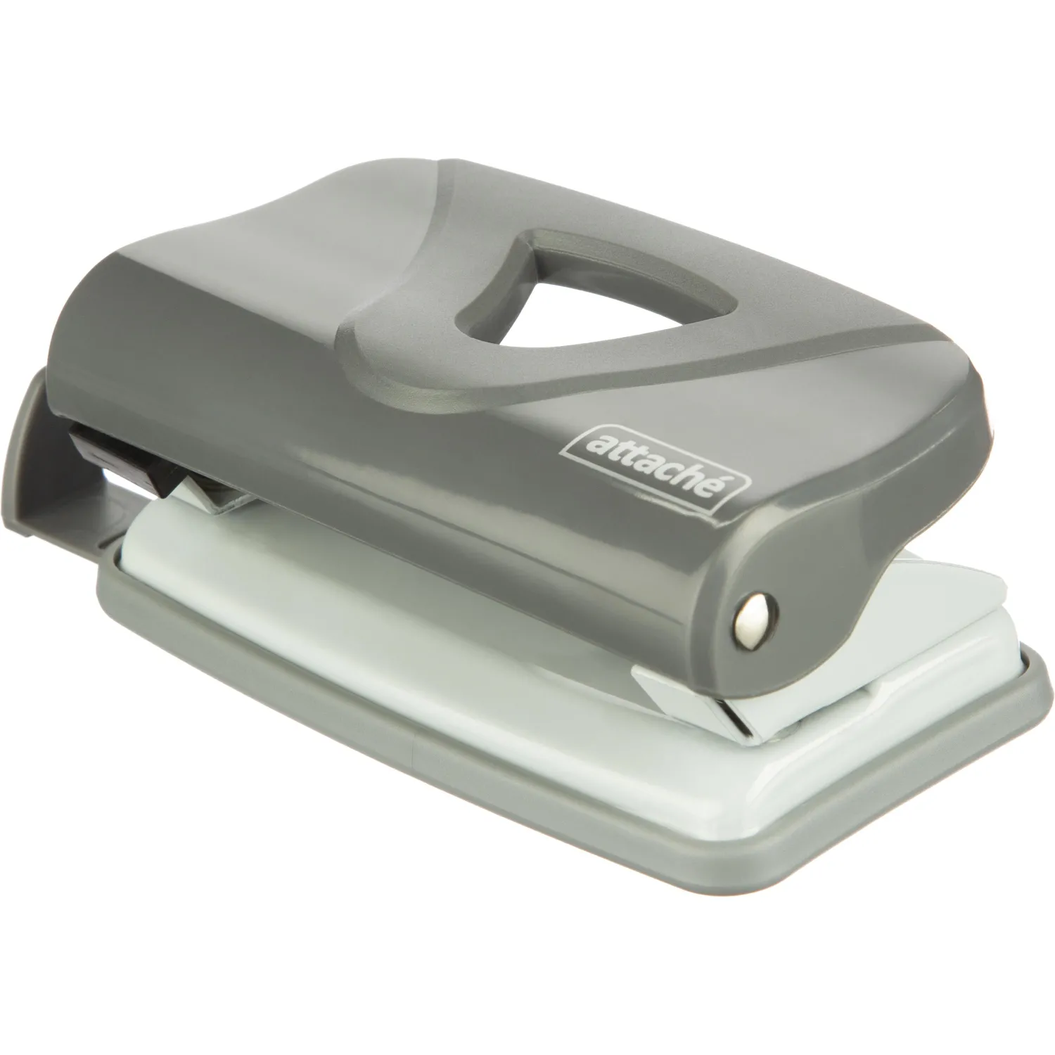 Дырокол Attache Smart - это важный и необходимый предмет для комфортной работы в офисе и дома. Дырокол позволяет сделать отверстия в документах и подшить их в папку с двумя и четырьмя кольцами или в скоросшиватель. Корпус дырокола классического дизайна и выполнен из высококачественного металла и пластика серого цвета. Работает с документами толщиной до 15 листов плотностью 80 г/кв.м. Дырокол пробивает два отверстия диаметром 6.0 мм, расстояние между отверстиями - 80 мм. Пробойники дырокола изготовлены из высококачественного металла и пластика, что позволит им прослужить дыроколу долго и без сложностей пробивать листы бумаги. Удобный контейнер для конфетти легко открывается и закрывается, исключая его рассыпание. Наличие линейки позволяет зафиксировать бумагу на нужном расстоянии и пробить отвестия в бумаге разного формата: А4, А6, А5.