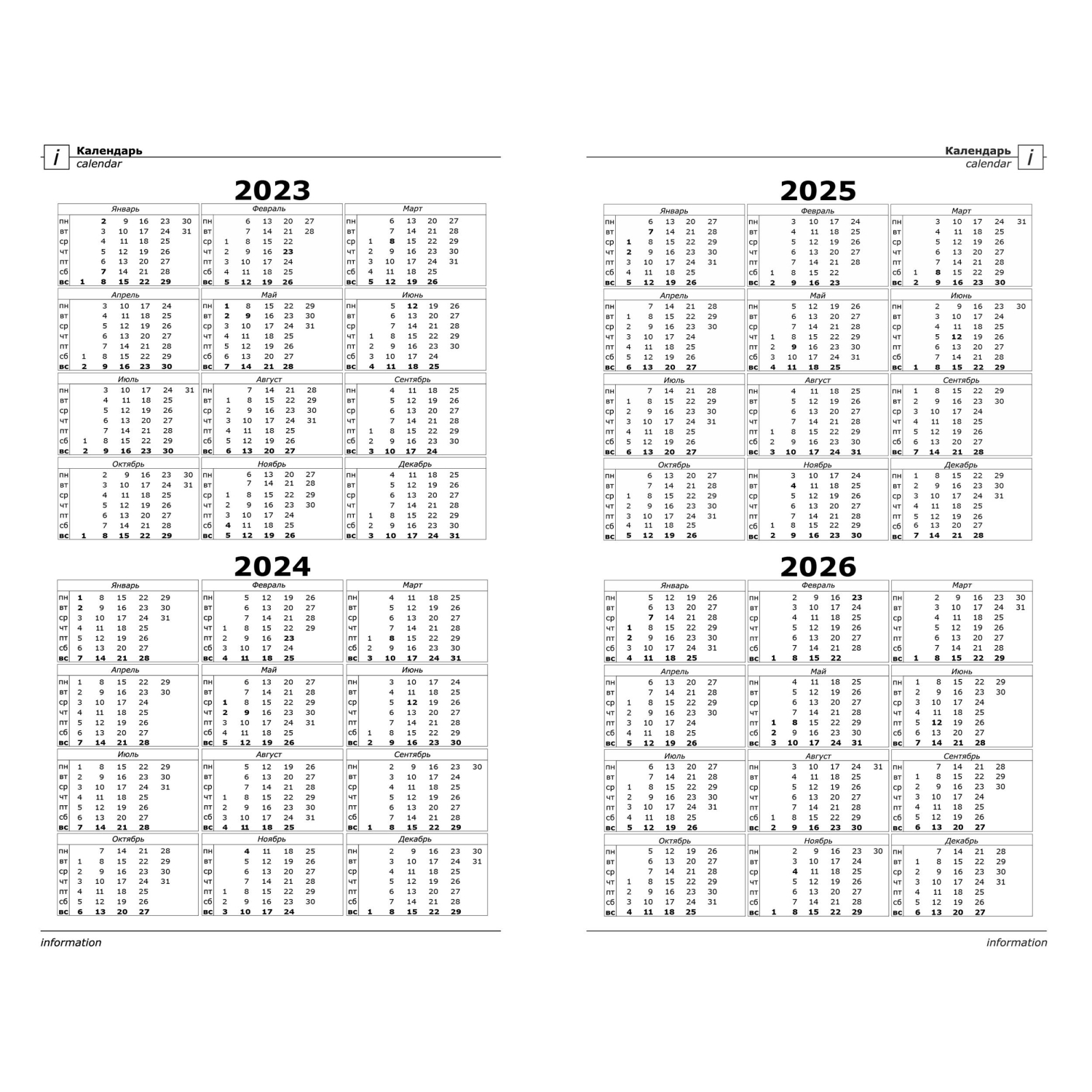 Календарь внутри: на 4 года