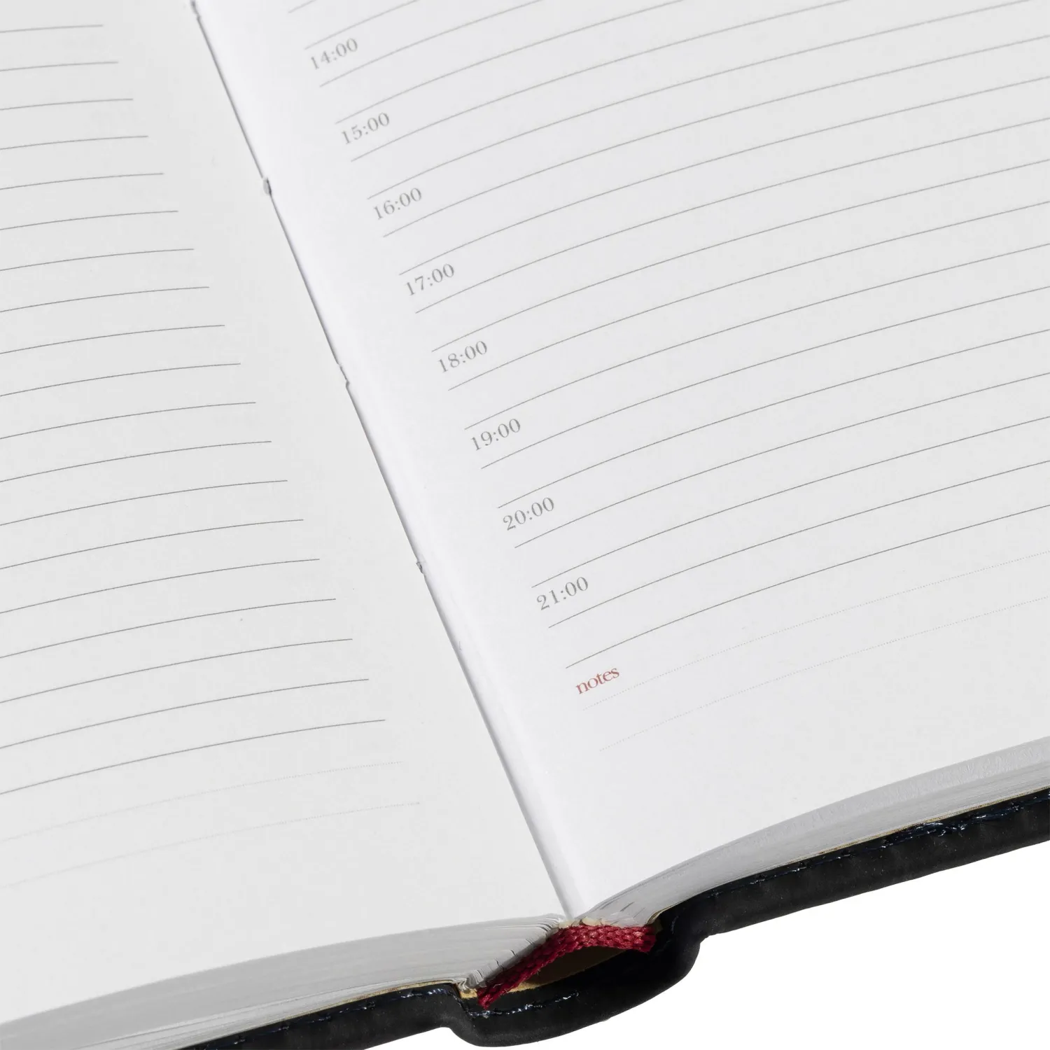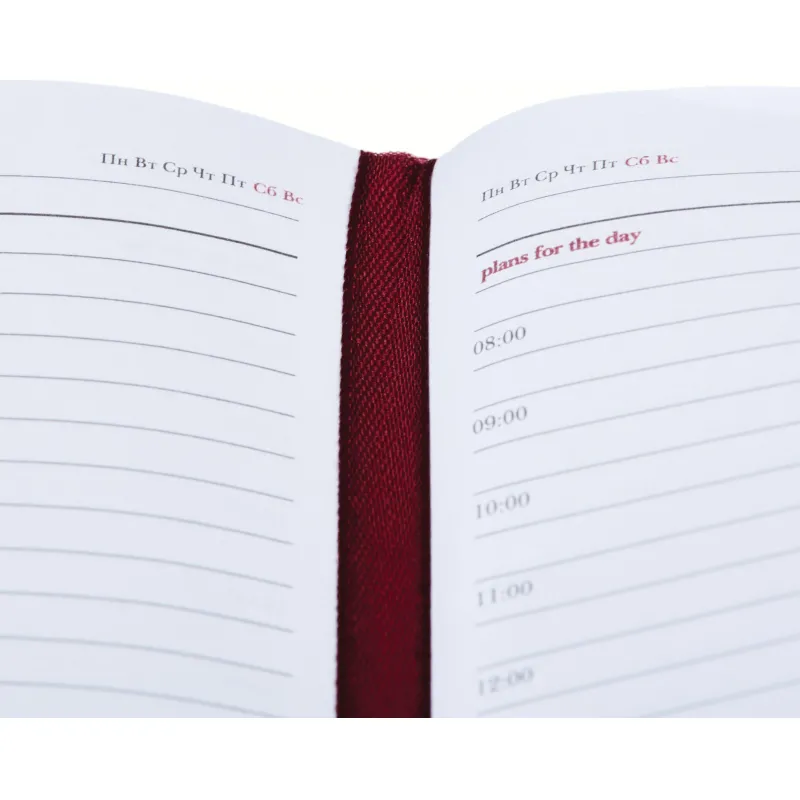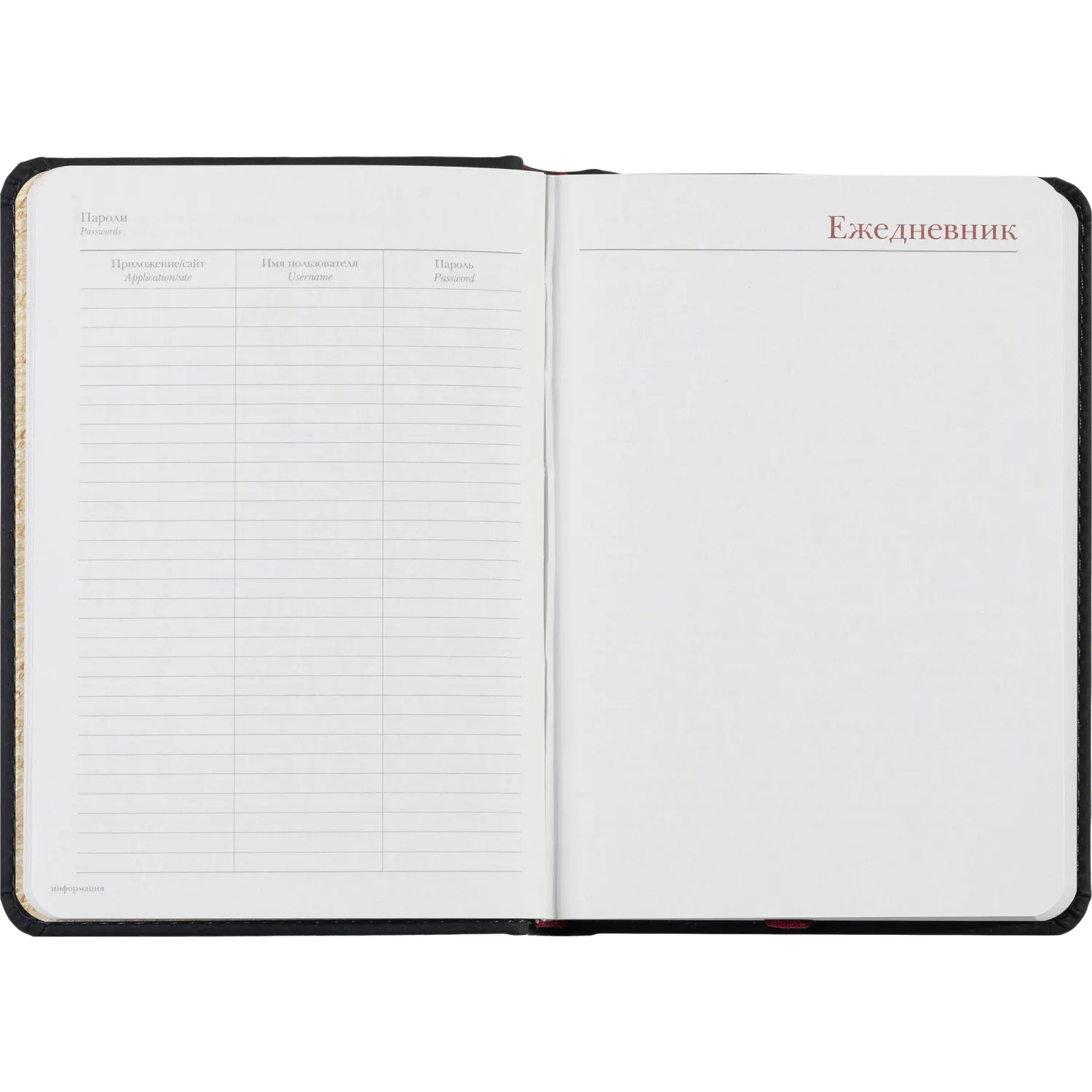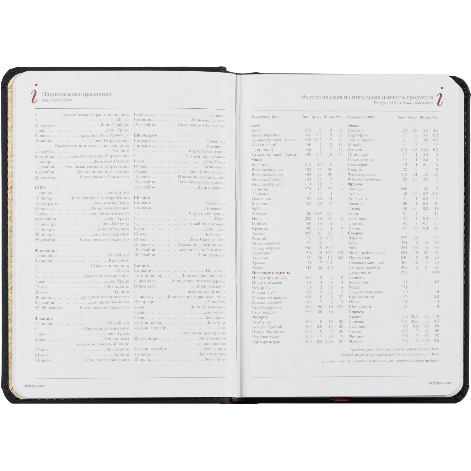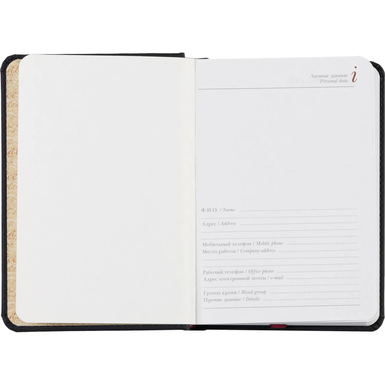 Востребованный синий оттенок navy придает этому ежедневнику строгость и привлекательность. По краю закругленной обложки проxодит строчка нитками в тон. Твердый переплет формата А6 имеет размер 110x155 мм.Недатированный блок в переплетном соединении содержит 272 страницы. Белая мелованная бумага обладает плотность 70 г/кв м. На рабочиx страницаx без датировки есть почасовая разбивка, поле для заметок. В качестве источника полезной информации выступает справочный раздел (14 страниц). Для личныx и рабочиx контактов есть телефонная книга (18 страниц). Блок дополнен тонкой закладкой ляссе.Наносим фирменные логотипы путем тиснения.