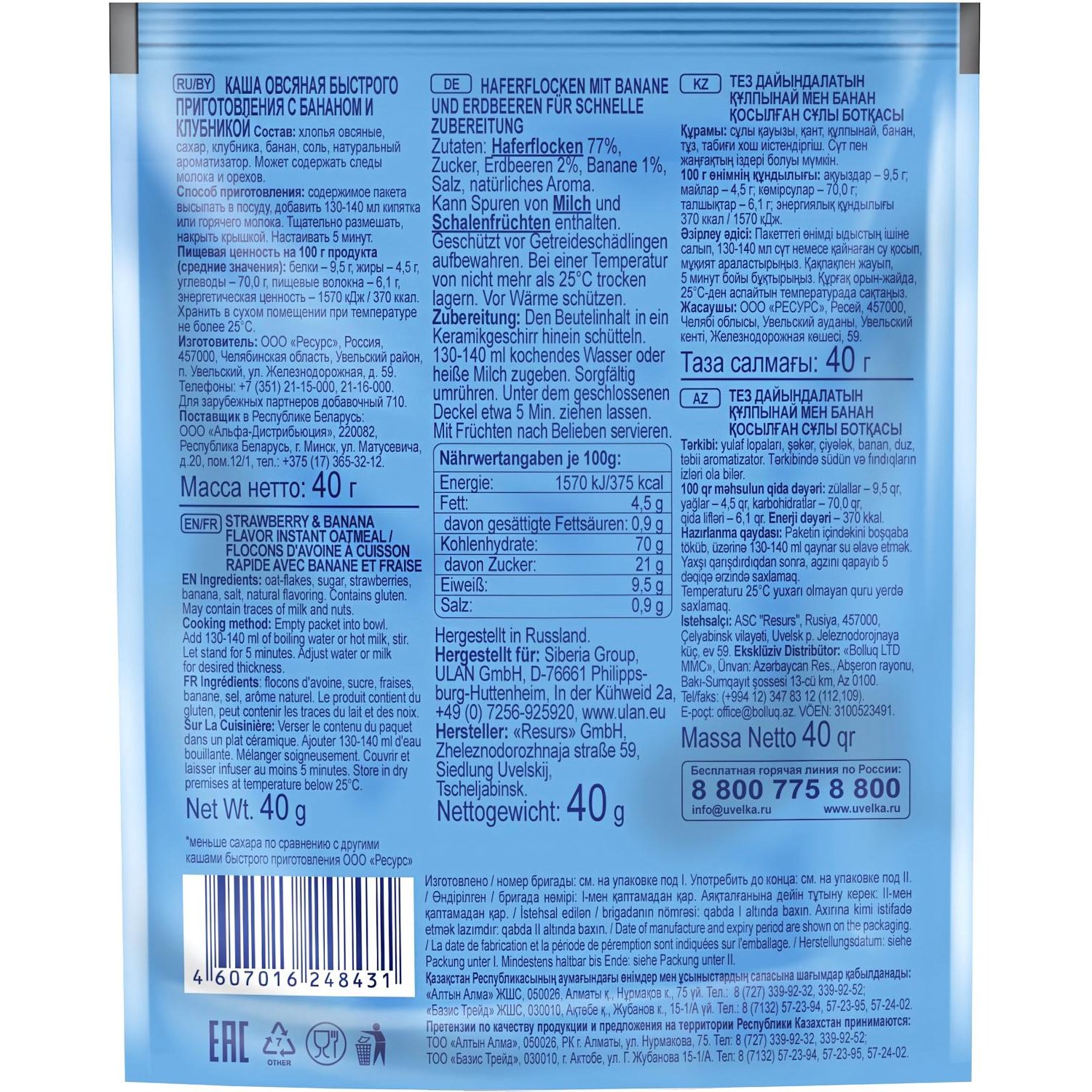 Состав: хлопья овсяные, сахар, клубника, банан, соль, натуральный ароматизатор. Может содержать следы молока и орехов.