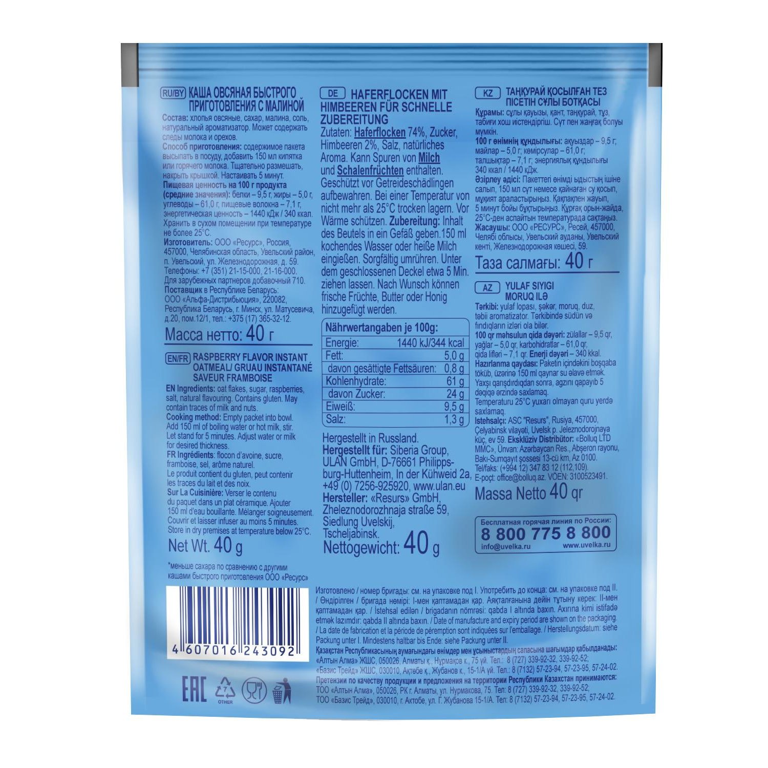 Каша овсяная УВЕЛКА с малиной — как будто ешь кашу с бабушкиным малиновым вареньем, помогающим от всего. Только меньше сахара. Но польза такая же.
