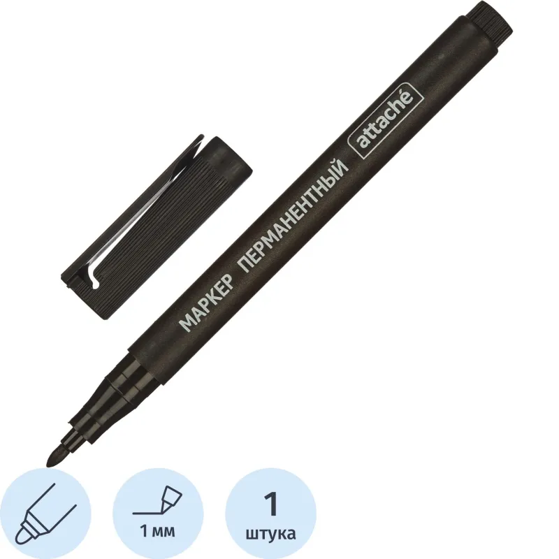 Особая нестираемая основа перманентного маркера Attache черного цвета обеспечивает такие качества, как стойкость к воздействию воды, ультрафиолета, низких и высоких температур. Можно маркировать, среди прочего, пластмассовые, деревянные, металлические, стеклянные или картонные предметы. Цвет колпачка соответствует цвету чернил. Круглый наконечник обладает повышенной износостойкостью и обеспечивает экономный расход чернил. Отличается продленной линией письма. Изделие не перезаправляется. Плотно закрывается колпачком, что предотвращает высыхание наконечника и чернил. Толщина линии письма — 1 мм, благодаря чему можно создавать тонкие, аккуратные линии. Спиртовая основа быстросохнущих чернил. Круглая форма корпуса из пластика, колпачок снабжен клипом. Перманентный маркер Attache должен быть всегда под рукой!