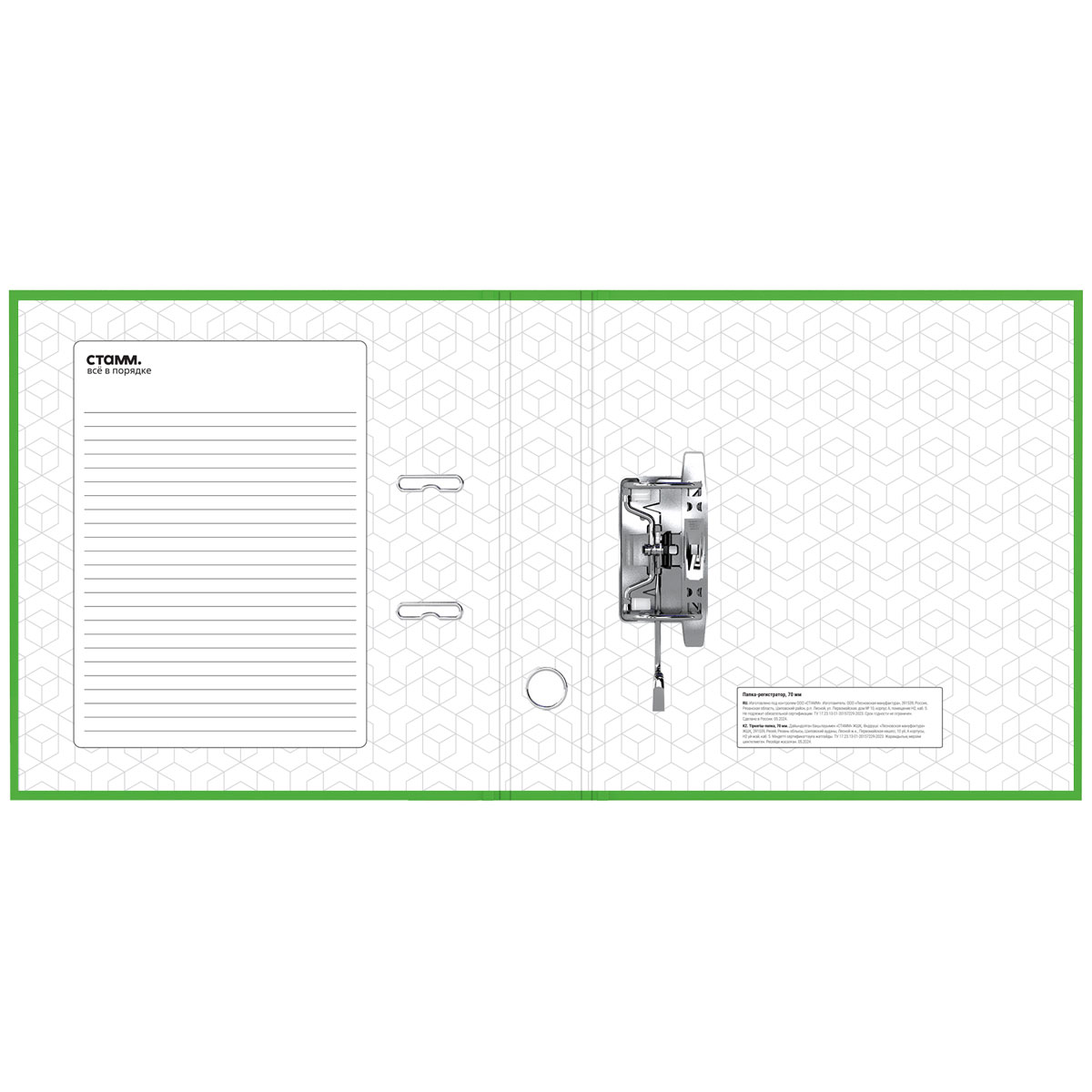 Папка-регистратор «СТАММ» серии «Стандарт» формата А4 с арочным механизмом идеальна для создания архива и экономии офисного пространства. Папка вмещает до 550 листов. Размер папки – 320*290*70 мм. Ориентация папки – вертикальная. Ширина корешка составляет 70 мм. Минималистичный классический дизайн: папка выполнена в насыщенном салатовом цвете. Изготовлена из жесткого износостойкого картона с односторонним покрытием из бумвинила. Папка имеет арочный механизм из качественного металла. Конструкция разработана с учетом всех особенностей эксплуатации. Эргономичное отверстие в корешке помогает быстро снять папку с полки. На корешке папки есть карман со сменным информационным ярлыком для маркировки. На внутренней стороне обложки папка-регистратор имеет поле для записи.