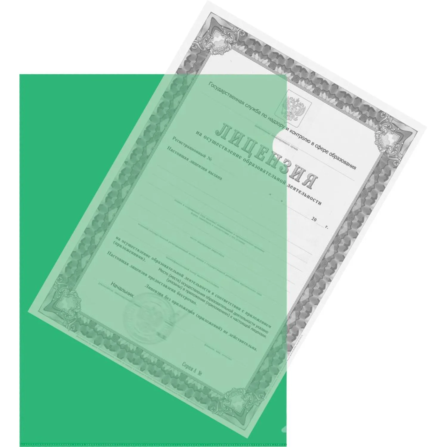 Папка-уголок формата А4 изготовлена из прозрачного полипропилена плотностью 120 мкм, зеленого цвета, 20 штук в упаковке. Вмещает до 40 листов. Позволяет удобно хранить и переносить документы, предотвращает их смятие и загрязнение. Папка имеет выемку для легкого извлечения листов.