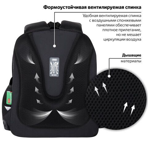 Удобная мягкая вентилируемая спинка с воздушными спонжевыми панелями разработана с учетом анатомических особенностей детей младшего школьного возраста. При правильной регулировке ранец практически не будет ощущаться на плечах и не будет доставлять дискомфорт при носке. В процессе эксплуатации равномерное распределение нагрузки позволит сохранить правильную осанку!