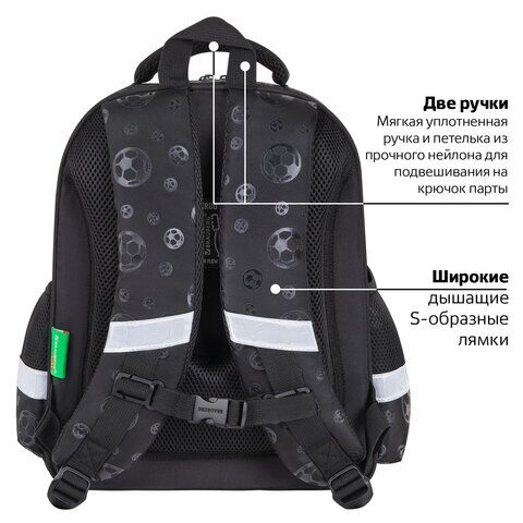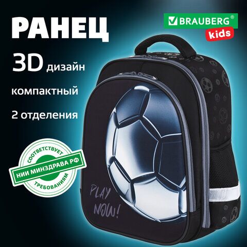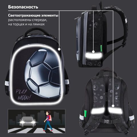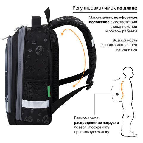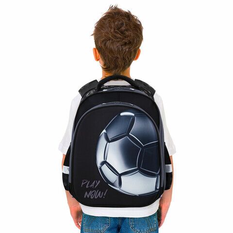 На передней панели ранца реализован уникальный 3D-эффект – выпуклое рельефное изображение футбольного мяча!