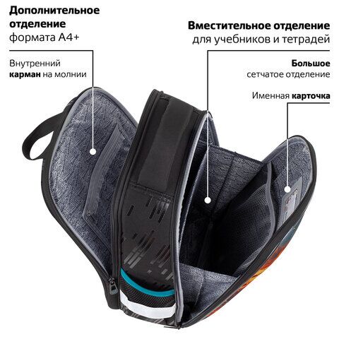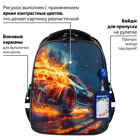 Ранец BRAUBERG FIT, 2 отделения, Speed increase, 38х27х14 см, 273109, 168003