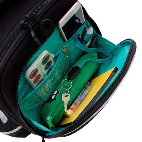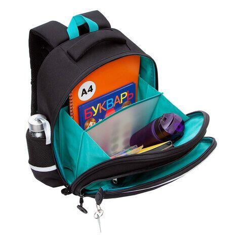 Ранец GRIZZLY помогает сохранить здоровую осанку даже при больших нагрузках на спину. Ранец серии RAz рассчитан на рост от 125 до 135 см. Основное отделение разбито на три отсека и предназначено для книг, тетрадей и папок А4. В дополнительное отделение по