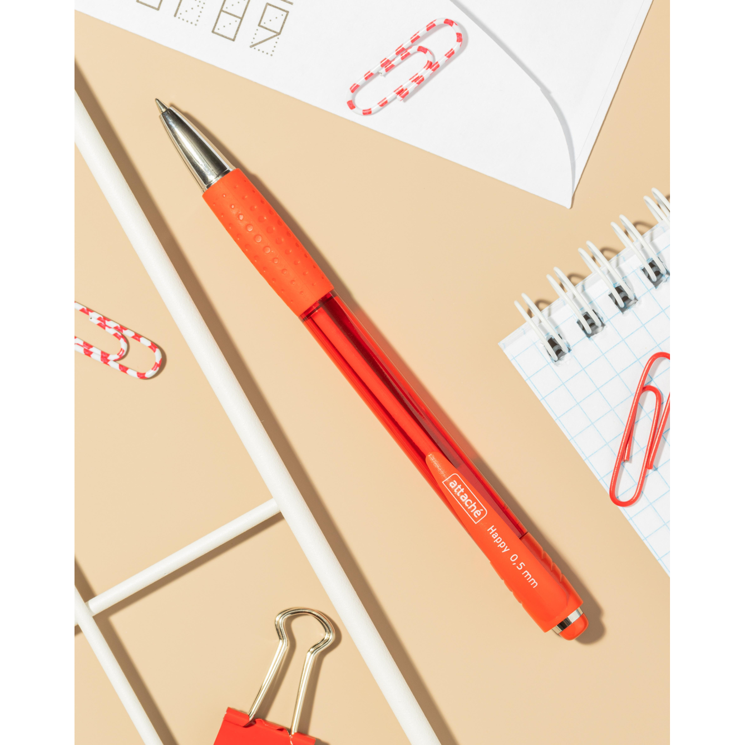 Автоматическая шариковая ручка Attache Happy в традиционном пластиковом корпусе с яркой резиновой манжеткой. Модель имеет автоматический механизм, пластиковый круглый корпус красного цвета с резиновой манжеткой. Размер ручки: 138х10 мм. Стержень снабжен стандартным наконечником и заправлен масляными чернилами синего цвета. Диаметр пишущего узла 0,7 мм создает тонкую линию письма, равную 0,5 мм. Существует возможность замены стержня длиной 108 мм. Автоматическая шариковая ручка Attache Happy - это уникальное сочетание стиля, надежности и удобства!