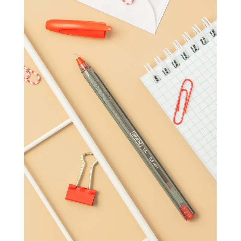 Ручка шариковая одноразовая Attache Glide Trio - это элегантная, компактная ручка. Ручка, созданная по революционным технологиям с использованием материалов высшего качества, обеспечивает мягкое и качественное письмо за счет использования чернил низкой вязкости Visco Fluid Ink на масляной основе. Сочетание уникальных технологий производства чернил и пишущего узла позволяет писать на 20% дольше без пропусков и помарок при минимальном давлении на ручку. Одноразовый стержень с игольчатым наконечником заправлен чернилами красного цвета. Диаметр пишущего узла 0,7 мм создает тонкую линию письма, равную 0,5 мм. Трехгранный эргономичный корпус из прозрачного пластика позволяет следить за расходом чернил. Ручка так же предназначена для левшей, что особенно важно для детей - левшей, которые учатся писать.