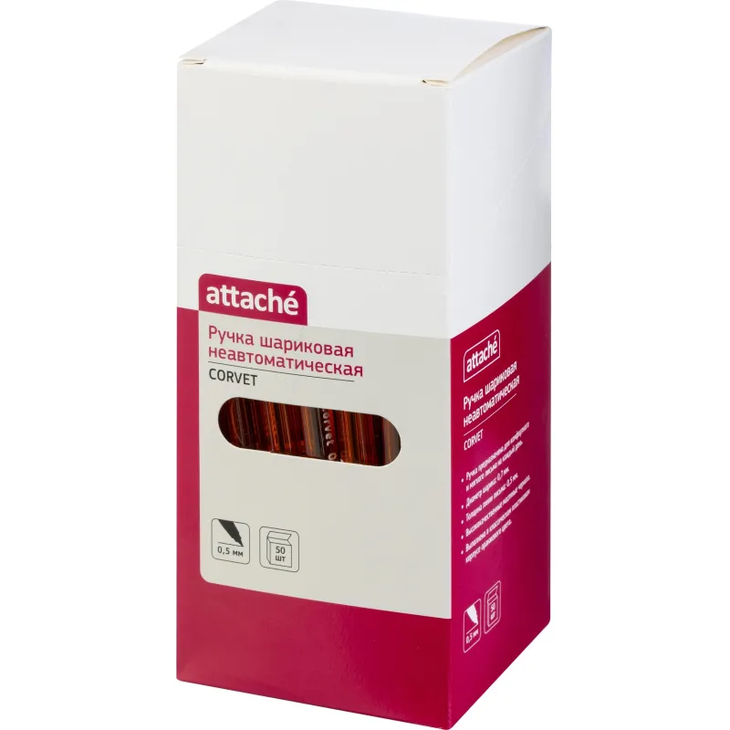 Ручка шариковая неавтоматическая Attache Corvet чёрная (толщина линии 0.5 мм) Ручка шариковая Attache Corvet чёрная со сменным стержнем. Ручка выполнена из пластика оранжевого цвета. Шестигранный корпус. Со стандартной формой наконечника стержня.