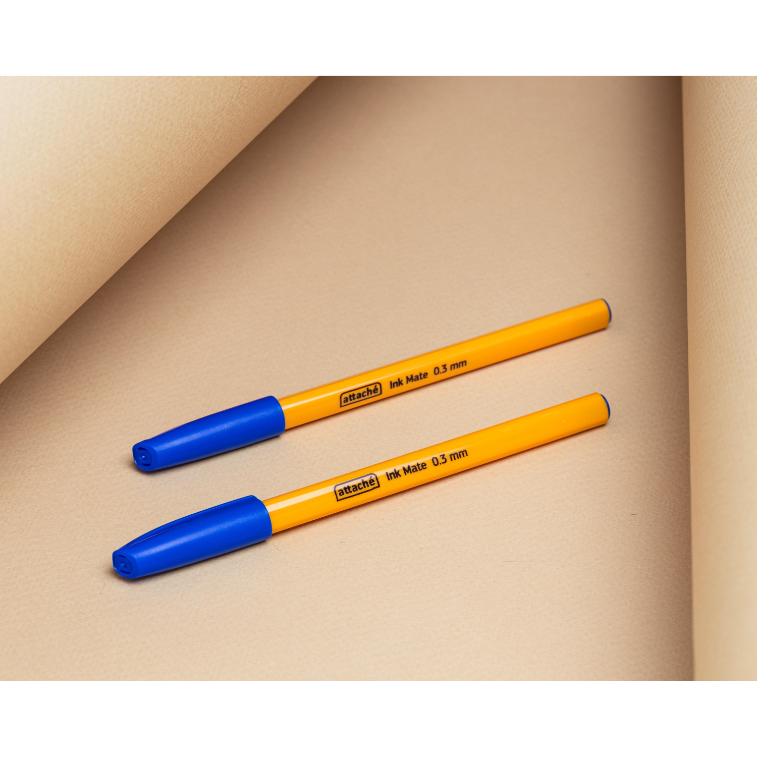 Ручка шариковая Attache Ink Mate — это яркий и запоминающийся дизайн! Модель выполнена в эргономичном трехгранном пластиковом оранжевом корпусе. Стильный дизайн ручки дополняет клип, позволяющий закрепить ручку в кармане или тетради для записей. Стержень длиной 127 мм заправлен масляными чернилами синего цвета, снабжен игольчатым наконечником диаметром 0.5 мм, который обеспечивает сверхтонкую линию письма 0.3 мм. Ручка обеспечивает непревзойденно легкое и мягкое письмо, яркие и насыщенные линии.