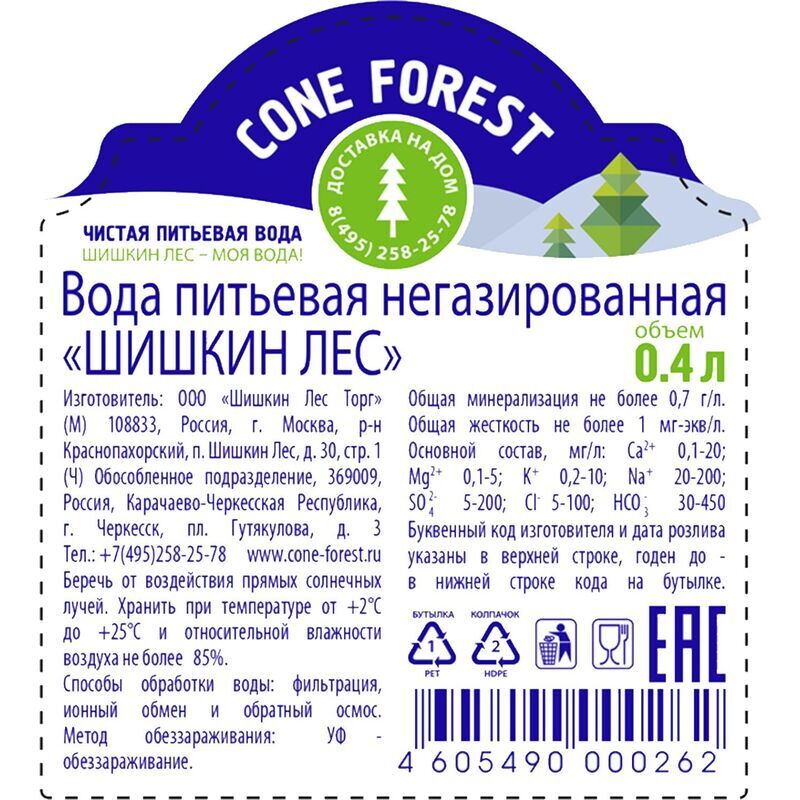 Вода питьевая Шишкин Лес негазированная 0.4 л — это чистая питьевая вода. Она идеально подходит для ежедневного потребления, употребляется в любых ситуациях, будь то прогулка, тренировка или поездка. Важно отметить, что вода предназначена для ежедневного употребления. Рекомендуется для поддержания водного баланса в течение дня, особенно в условиях физической активности. Вода не содержит искусственных добавок и имеет нейтральный вкус.