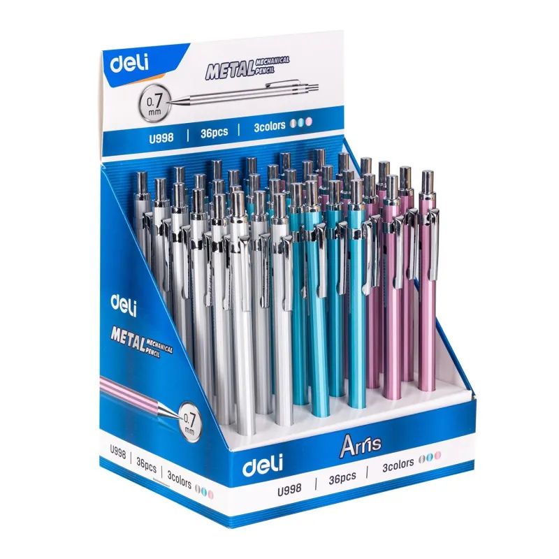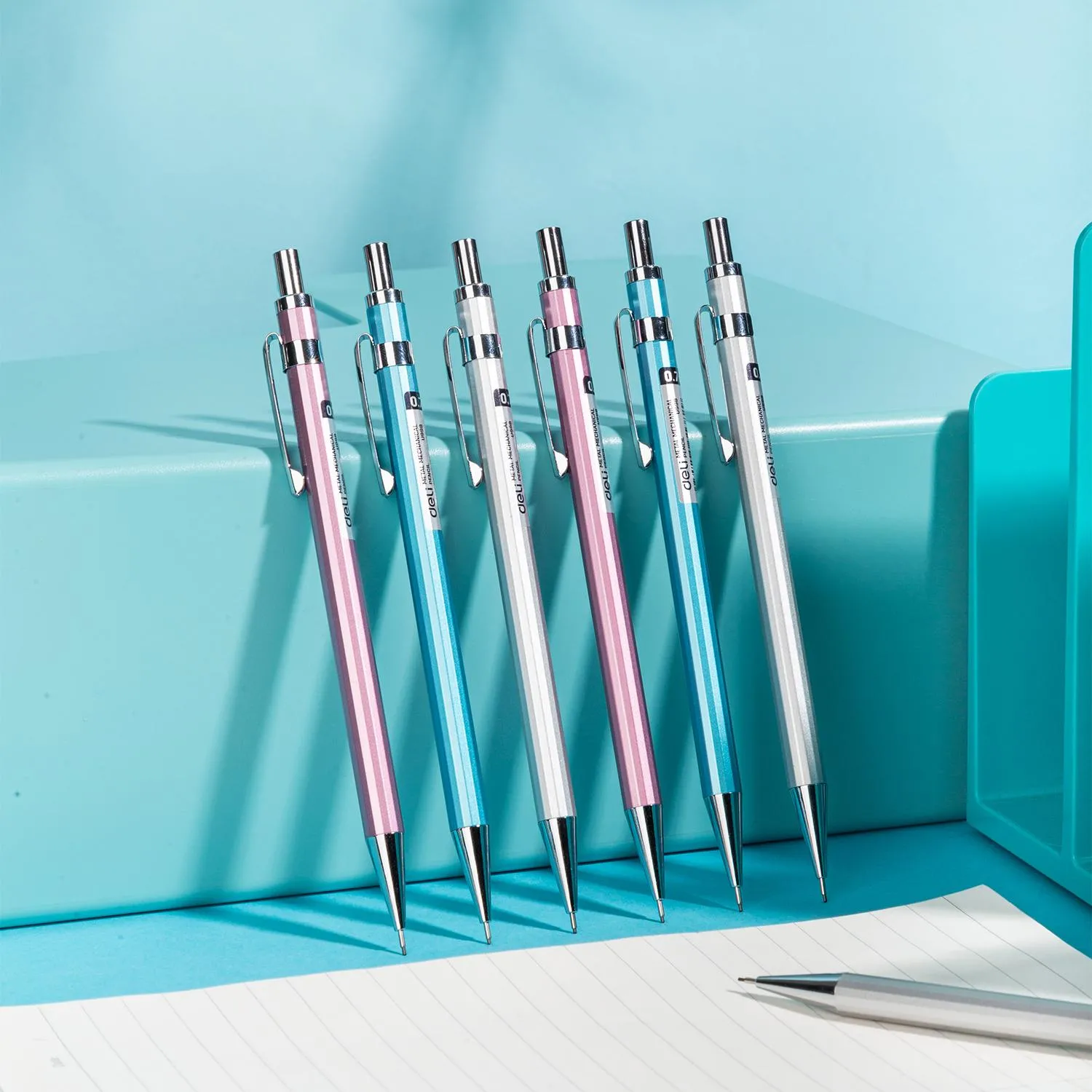 Карандаш механический Deli Arris для графики и скетчинга. Карандаш подходит для рисования, где он необходим как основа всего рисунка, перед тем как применять цветные карандаши или фломастеры. Выполнен в металлическом корпусе с клипом. Качественная система подачи стержня с диаметром пишущего узла 0.7 мм. За счет этого штриховка получается равномерной и четкой. Прочная жесткая направляющая обеспечивает отличный результат при черчении по линейке или трафарету. Убирающийся наконечник карандашей обеспечивает безопасную транспортировку, карандаши не откроются даже в кармане. Карандаш механический удобен тем, что его никогда не нужно затачивать, а удобный клип на корпусе позволяет фиксировать ручку на ежедневниках, блокнотах и карманах одежды. Внимание! Товар поставляется в нескольких вариантах цвета/дизайна (без возможности выбора).