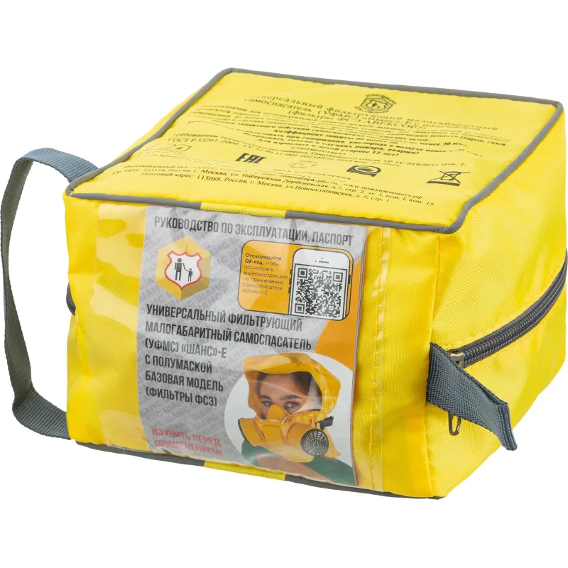 Самоспасатель фильтрующий Шанс-Е малогабаритный (30 минут) — это универсальный фильтрующий малогабаритный самоспасатель с полумаской, предназначенный для индивидуальной защиты органов дыхания и зрения от токсичных продуктов горения, включая монооксид углерода, при эвакуации из задымленных помещений во время пожара. Он также обеспечивает защиту от опасных химических веществ, таких как пары, газы и аэрозоли, в случаях техногенных аварий.