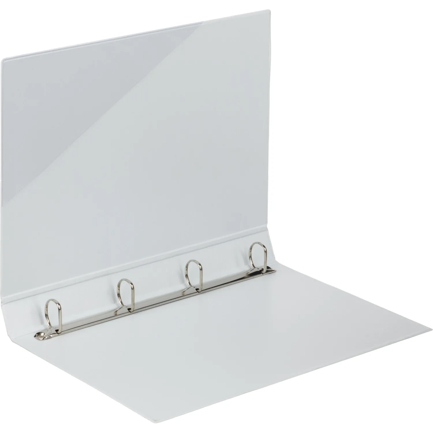 Папка Панорама изготовлена из прочного картона толщиной 1,75мм, покрытого с двух сторон пленкой ПВХ белого цвета. Формат А4, ориентирован вертикально. Оснащены механизмом на четырех D-образных кольцах, диаметром 25мм. Вмещают до 250 листов стандартной плотности. Корешок шириной 40 мм имеет прозрачный карман для сменной этикетки. На лицевой и оборотной сторонах папки для презентаций расположены карманы А4 для размещения титульного листа и прочей информации. На внутренней стороне обложки - карман для документов.