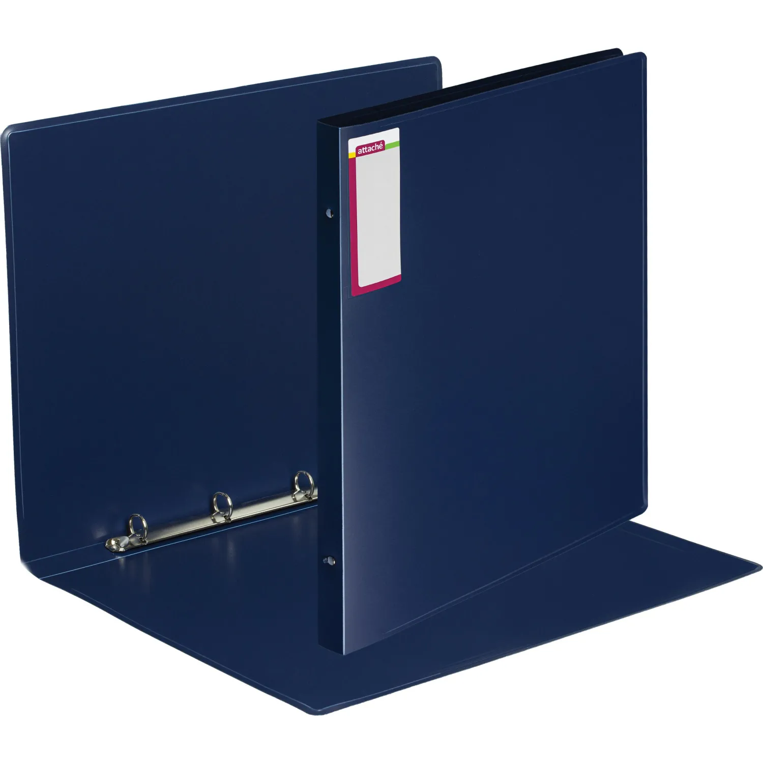 Папка на кольцах рекомендуются как для временного, так и длительного хранения, систематизации, архивирования документов. Такие папки используются в работе офисными сотрудниками различных специальностей, направлений, должностей. Можно использовать для хранения документов дома. Папка на четырех кольцах Attache изготовлена из жесткого пластика толщиной 0,7 мм синего цвета. Формат А3, вертикальный. Снабжена механизмом на четырех кольцах диаметром 25 мм. На обложке есть наклейка для маркировки. Ширина корешка составляет 32 мм. Папка на кольцах формата А3 вмещает до 200 листов стандартной плотности.