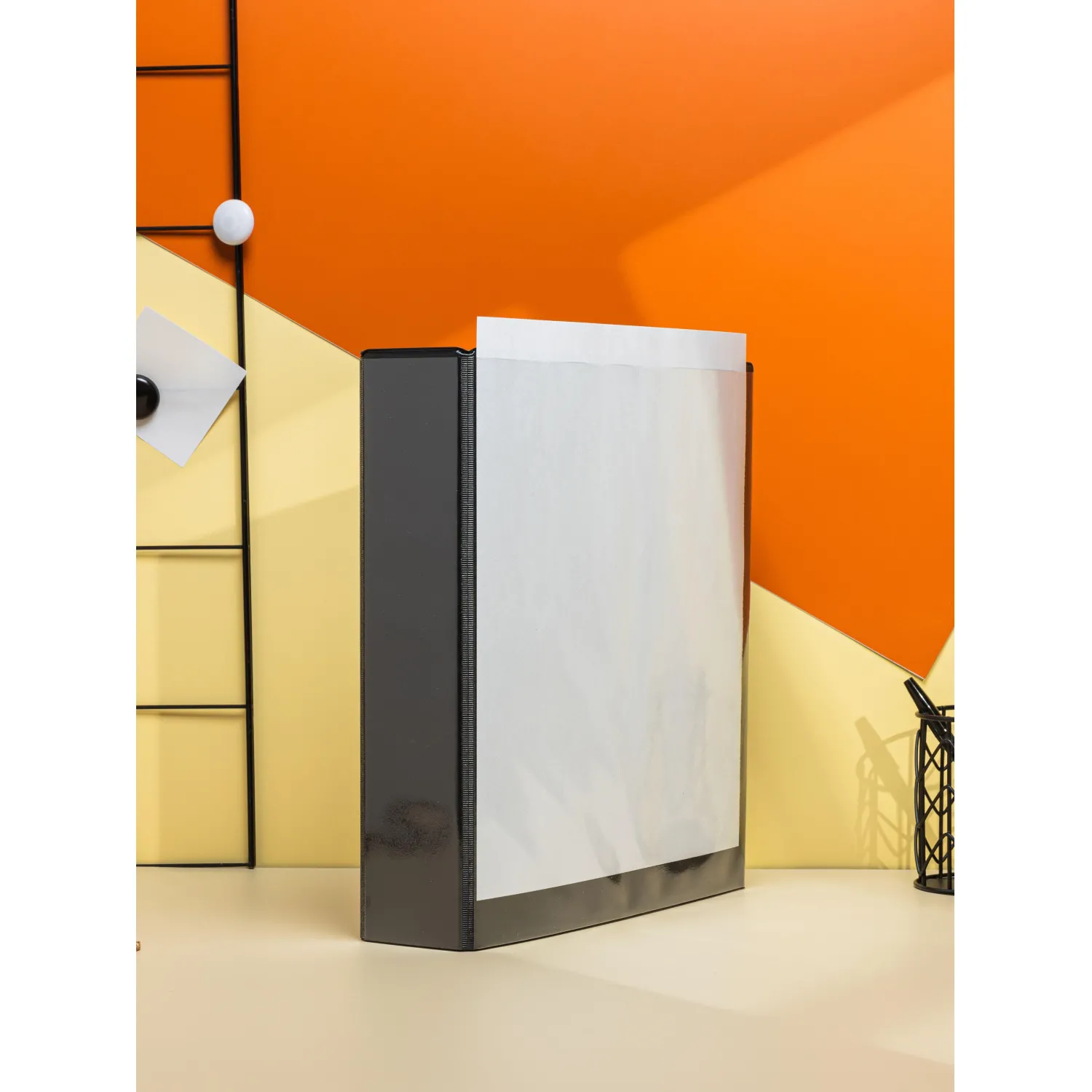 Изготовлена из плотного картона, с внешней и внутренней стороны покрыта пластиком черного цвета.