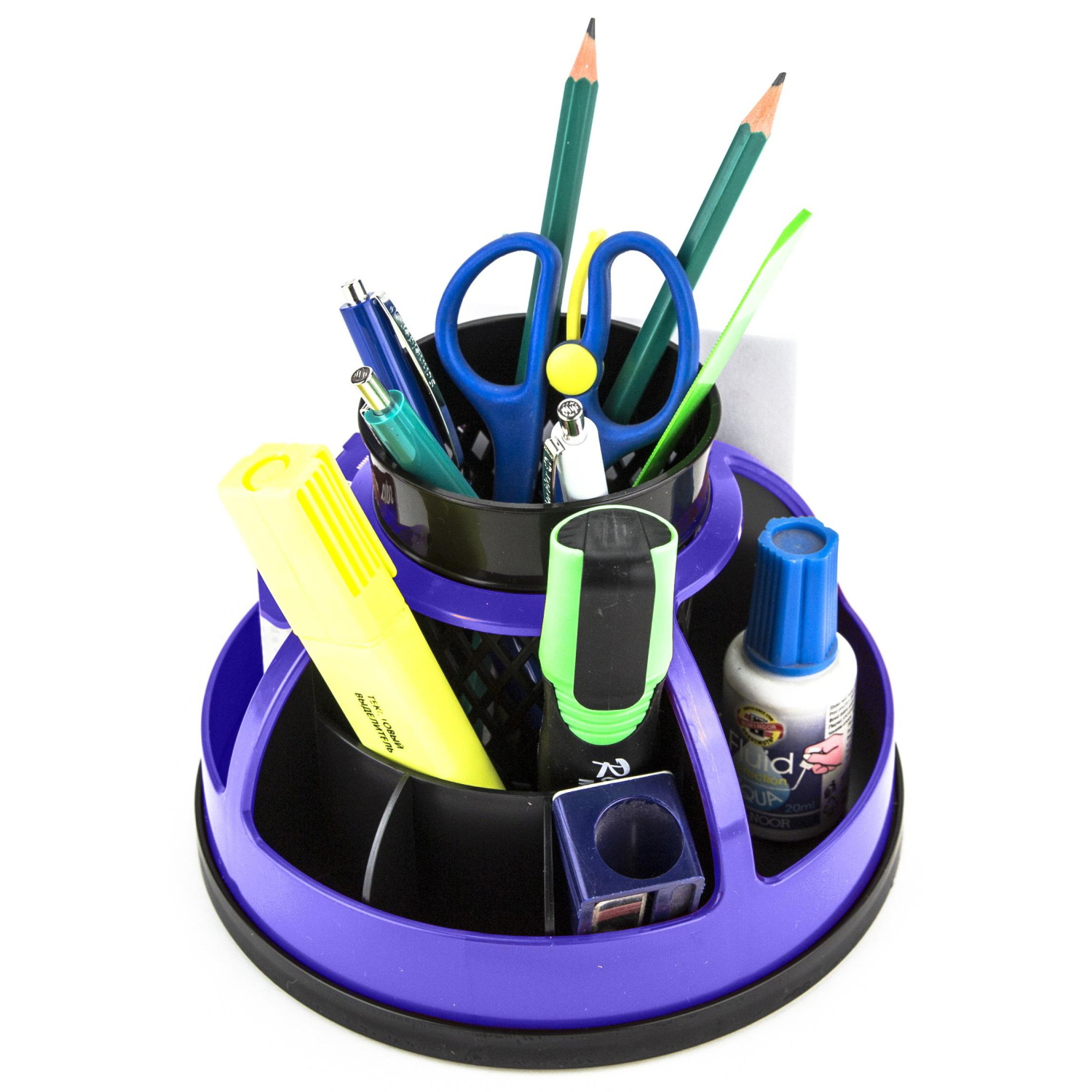 Подставка-органайзер для канцелярских мелочей Attache имеет 9 отделений для канцелярских принадлежностей и блока бумаги. Компактная и эргономичная. Выполнена из перерабатываемого высококачественного пластика фиолетового и черного цвета. Вращается на 360 градусов.