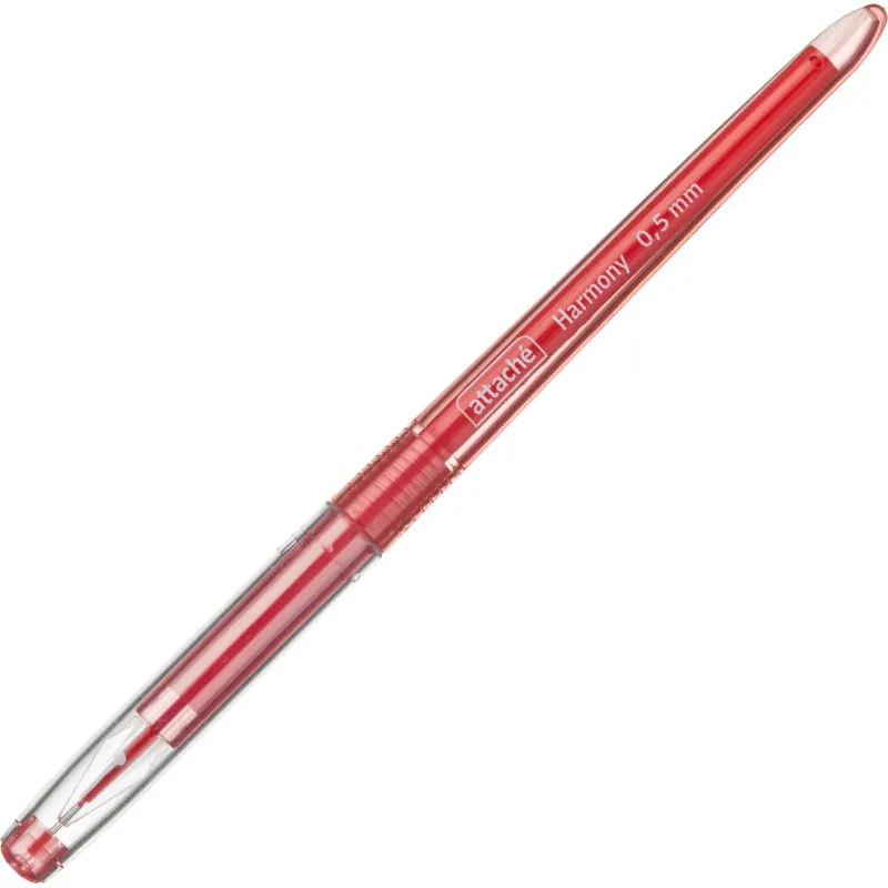 Ручка гелевая неавтоматическая Attache Harmony изготовлена из высокачественного пластика. Ручка имеет футуристичный дизайн корпуса и необычный наконечник в форме кристалла. Чернила быстро высыхают, не размазываются. На корпусе отмечена удобная зона для захвата. Ручка имеет круглый глянцевый корпус полупрозрачного красного цвета. Стержень замене не подлежит. Имеет игольчатый наконечник, который обеспечивает сверхтонкое письмо. Диаметр пишущего узла, равный 0,5 мм, создает линию письма, равную 0,5 мм. Цвет чернил: красный.