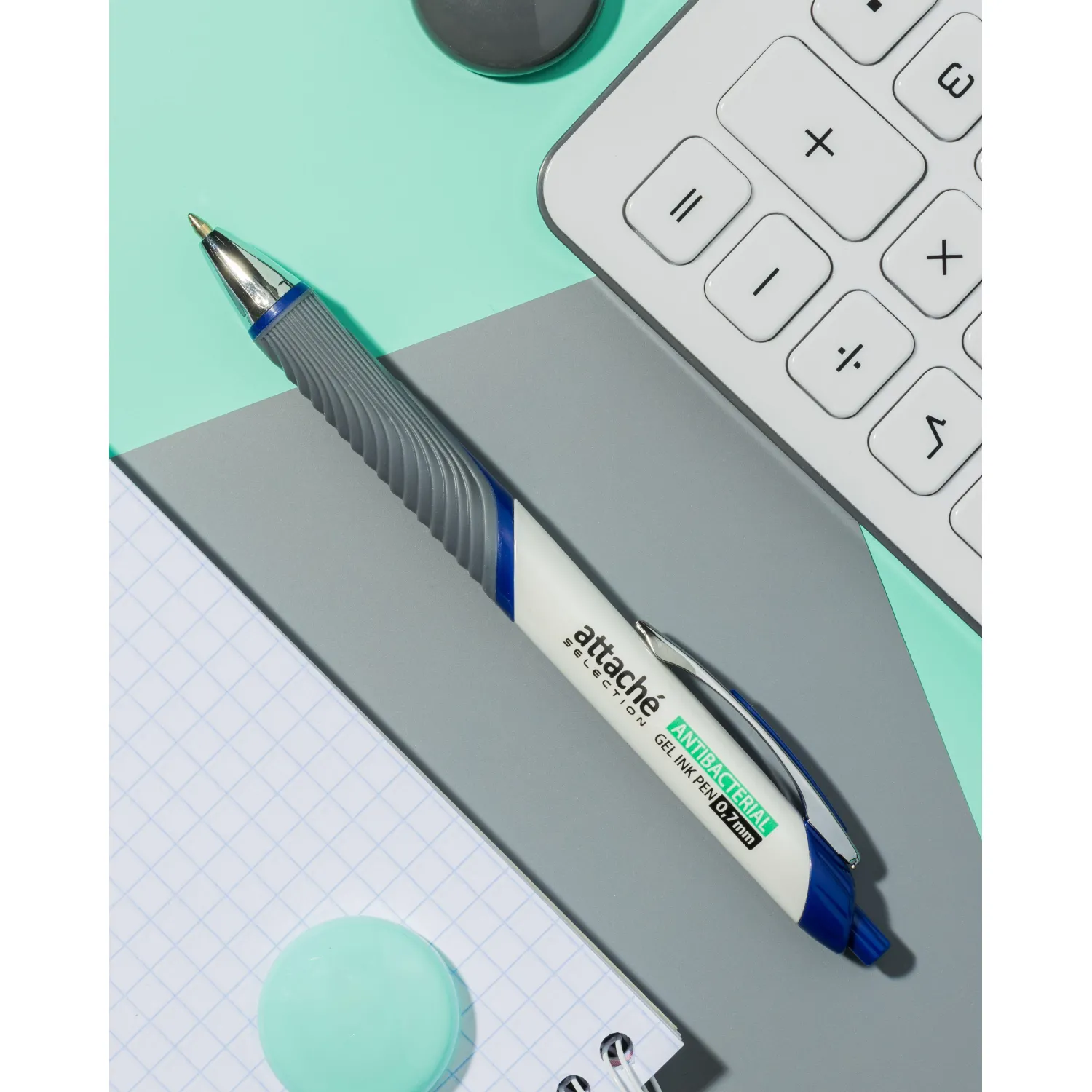 Ручка гелевая автоматическая Attache Selection изготовлена из высококачественного пластика. Мягкая резиновая манжета предотвращает усталость при письме. Манжета имеет антибактериальное покрытие. Ручка обеспечивает легкое и мягкое письмо, яркие и насыщенные линии. Чернила высыхают в течение секунды и не размазываются. Ручка имеет круглый корпус белого цвета с перламутровым напылением. Ручка имеет стандартный наконечик. Сменный стержень длиной 110 мм с увеличенным объемом чернил. Диаметр пишущего узла, равный 0,7 мм, создает линию письма, равную 0,7 мм. Цвет чернил: синий. Стильная ручка с цветными вставками и логотипом, расположенным на поверхности корпуса, удобна в использовании.