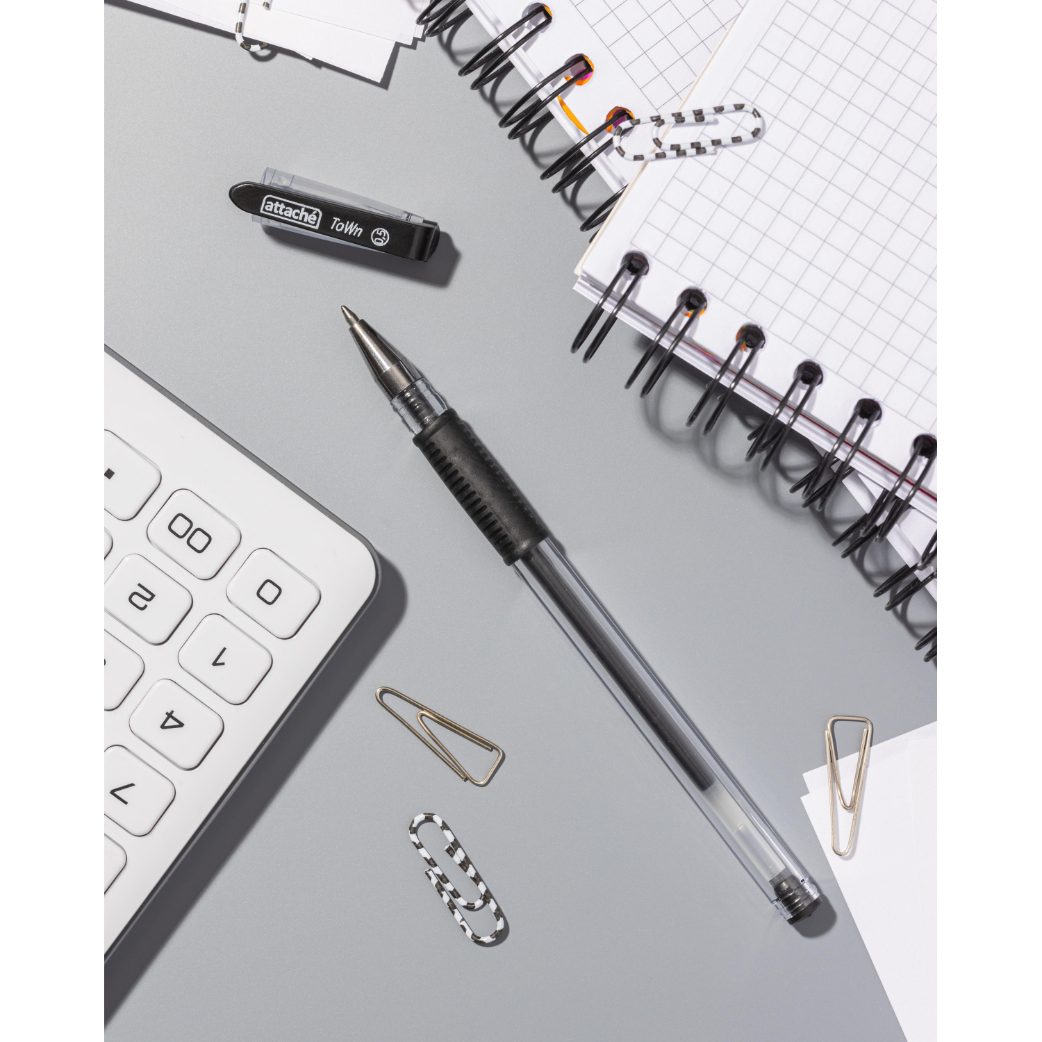 Ручка гелевая неавтоматическая Attache Town изготовлена с применением переработанного пластика. Ручка обеспечивает легкое и мягкое письмо. Чернила быстро высыхают, не размазываются. На корпусе имеется удобная резиновая манжетка для снижения напряжения руки во время долгого письма. Ручка имеет круглый корпус прозрачного цвета. Детали ручки черного цвета и соответствуют цвету чернил. Сменный стержень длиной 139 мм позволит использовать ручку максимально долго. Имеет стандартный наконечник. Диаметр пишущего узла, равный 0,7 мм, создает линию письма, равную 0,5 мм. Цвет чернил: черный. Особый акцент этой ручке придает лаконичный дизайн. Сочетается с другими изделиями коллекции Town.