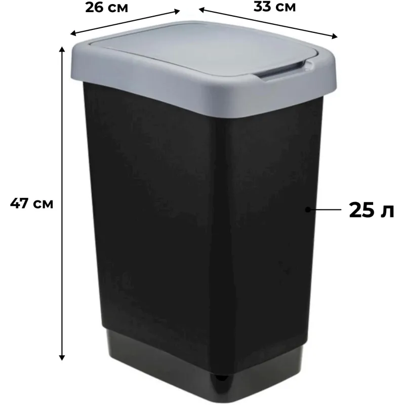 Ведро для мусора Idea Twin 25 л пластик черное/серое (26?33?47 см).