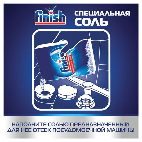 Специальная соль FINISH для защиты посудомоечной машины от известкового налета. Улучшает работу посудомоечной машины, смягчает воду, защищает от накипи, устраняет подтеки, предотвращает образование известкового налета.