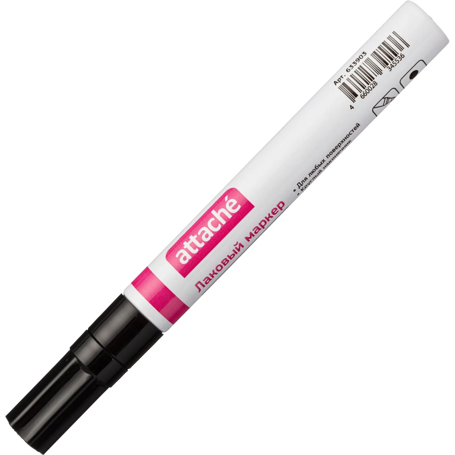 Маркер промышленный лаковый Attache, цвет черный. Предназначен для непрозрачной маркировки практически всех материалов, например, стекла, пластика, дерева или металла. Чернила маркера с лакирующим эффектом. Водостойкий, быстро сохнет. Поток чернил регулируется клапаном. Алюминиевый корпус. Толщина линии - 4 мм. Количество краски - 6 г. Наконечник изготовлен из Японского качественного материала.Инструкция по применению маркера:1. Перед использованием хорошенько встряхнуть с закрытым колпачком.2. Снимите колпачок, прижмите наконечник к поверхности, надавите и удерживайте пока не проступит краска.3. Применять после того как убедитесь, что вытекает исходный цвет. Предостережения: плотно закрывайте колпачок после применения, держать маркер вдали от огня, прямые солнечные лучи вызывают обесцвечивание.