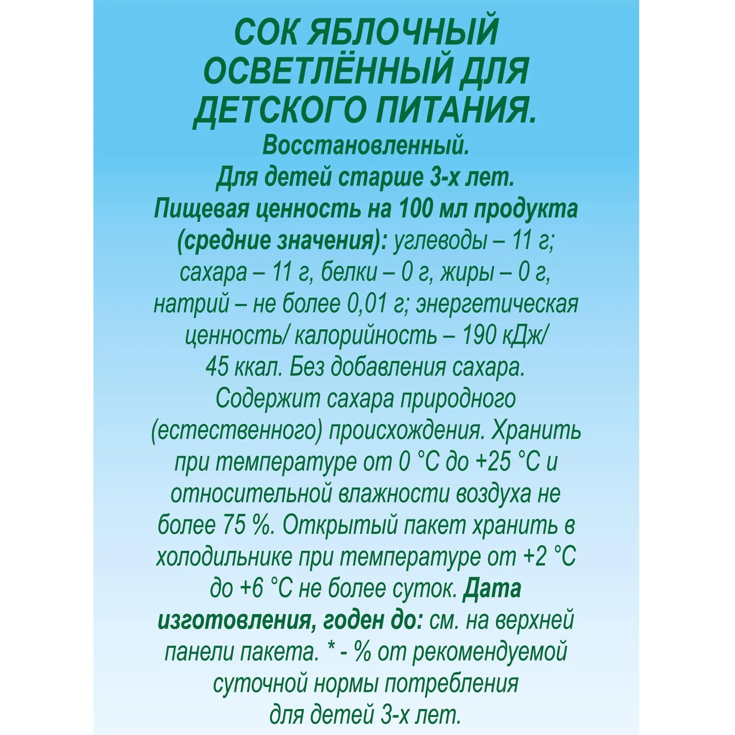 Пищевая ценность на 100 мл: углеводы — 11 г.