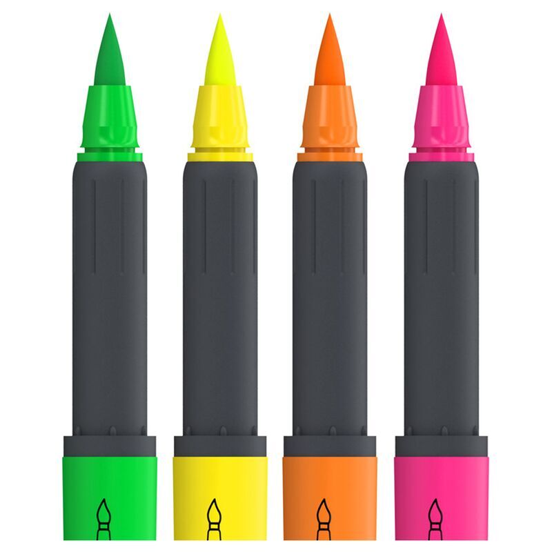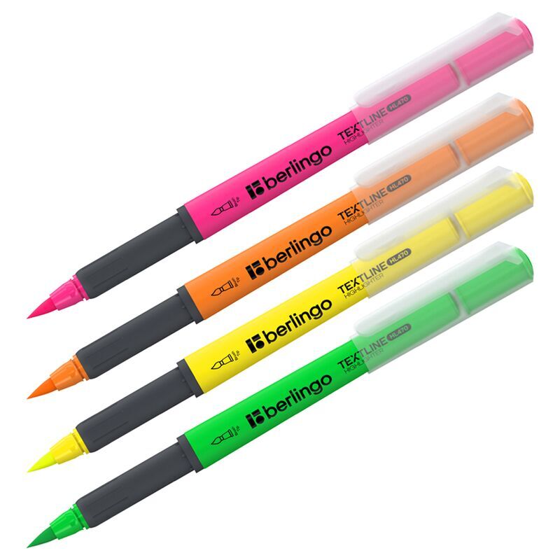 Набор текстовыделителей с пишущим узлом в форме кисти позволяет максимально свободно варьировать ширину линии письма и использовать выделители не только в учебных, но и художественных и прочих креативных работах. В текстовыделителях использованы неоновые чернила классических цветов. Корпус выделителей выполнен с мягким резиновым грипом, значительно повышающим комфорт при использовании, и окрашен в цвет чернил, что значительно облегчает поиск нужного оттенка. Удобный пластиковый клип позволяет легко закрепить текстовыделители на блокноте, ежедневнике или планшете. Набор содержит 4 текстовыделителя: желтый, оранжевый , розовый, зеленый. Выделители упакованы в удобный пластиковый бокс с европодвесом.