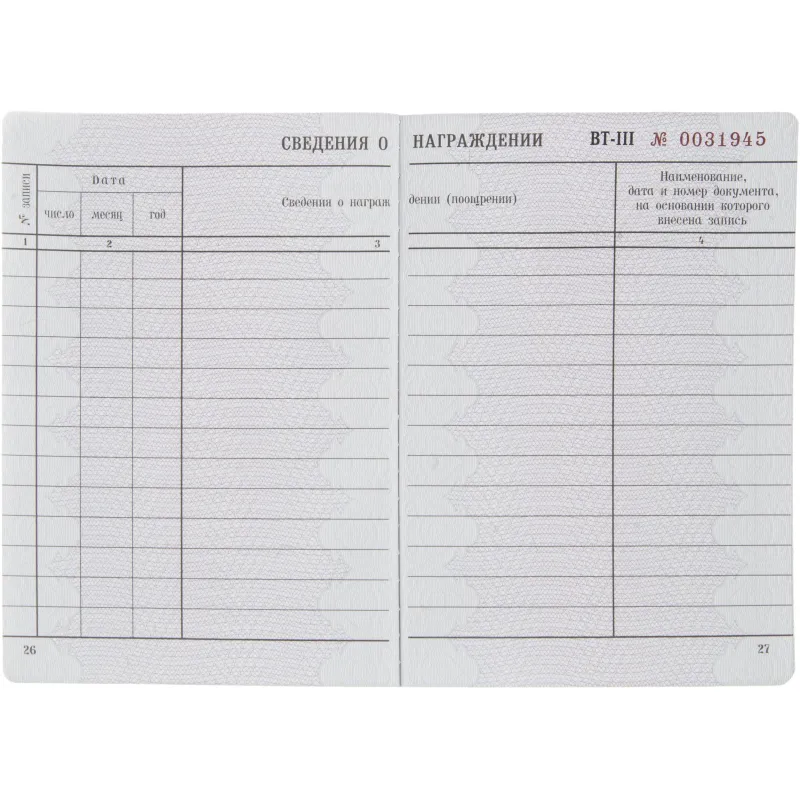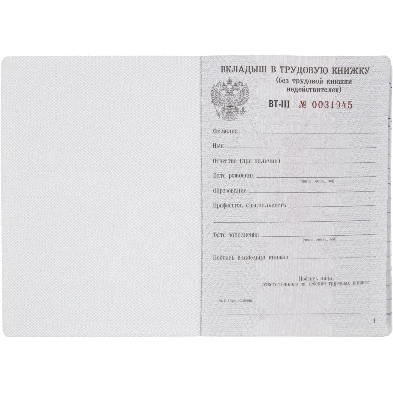 Вкладыш нового образца 2023 года в трудовую книжку третьей серии выполнен в формате 88x125 мм. В книжке 9 одинаковых номеров. Объем вкладыша: 'Сведения о работе' - 12 разворотов, 'Сведения о награждениях' - 5 разворотов. Поставляется без голограммы (согласно действующему законодательству, наличие голограммы в трудовой книжке не является обязательным условием). Внимание! Приобретение трудовых книжек и вкладышей к ним доступно только для юридических лиц по безналичному расчету.