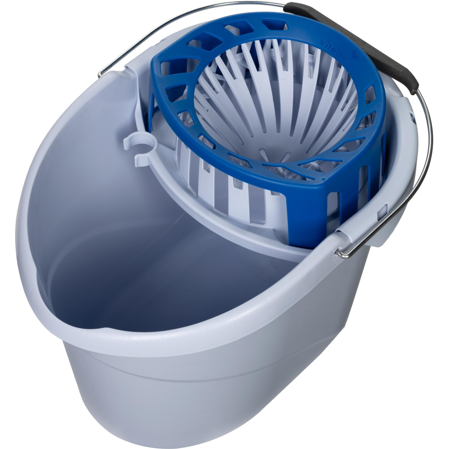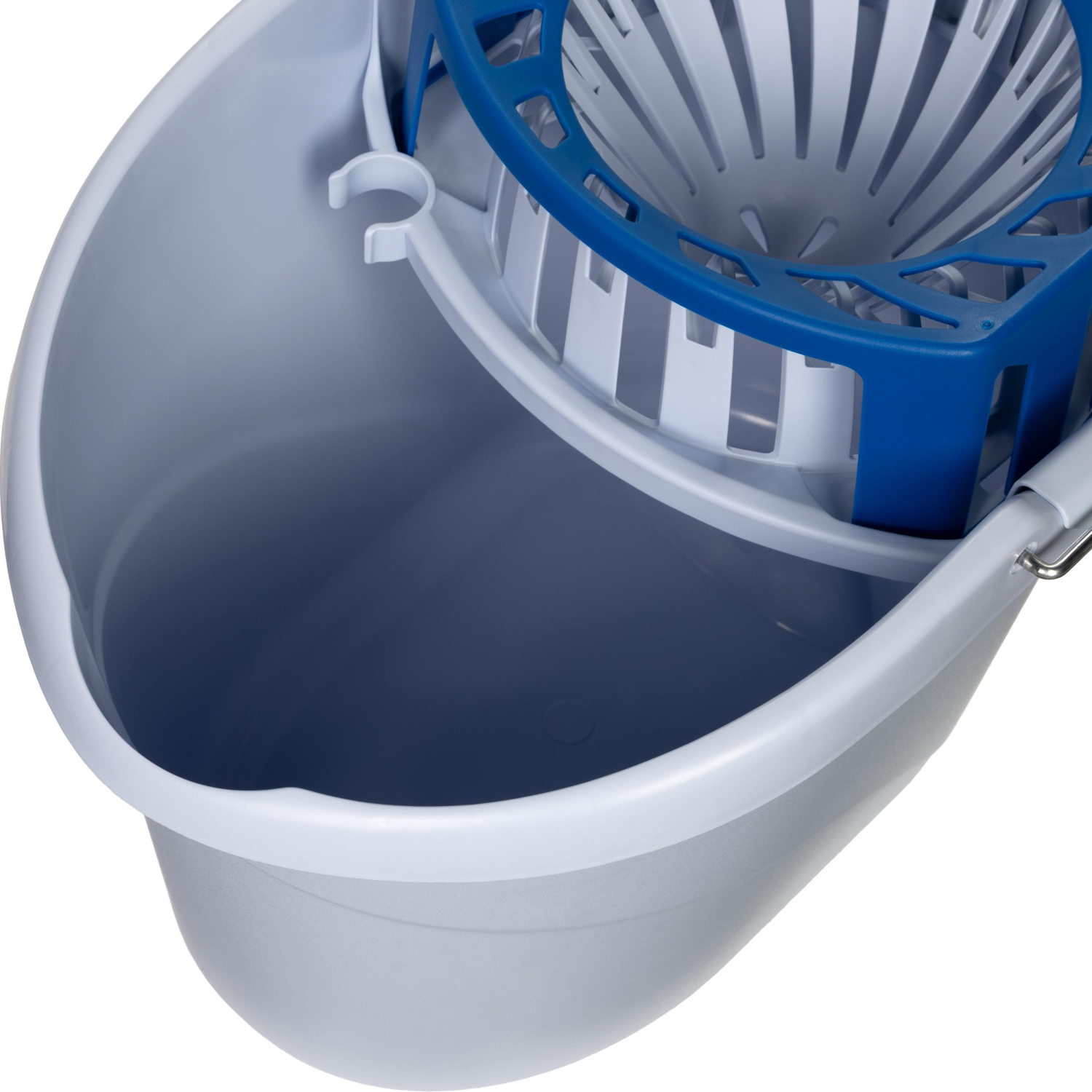 Ведро с отжимом Vileda Professional Супермоп 10 л пластик синий отжим (арт. производителя 149408). Ведро с отжимом для системы СуперМоп для уборки методом &,#039,ведро-вода&,#039,. СуперМоп - компактная система с мопом веревочного типа для уборки на небольших площадях до 75 м2. Уборка небольших офисов, кафе, кухонь, санузлов, салонов связи и других объектов с невысокой проходимостью и малой площадью до 75 кв.м. Используется для уборки методом &,#039,ведро-вода&,#039, в системе СуперМоп. Особенности и преимущества: - легкая, компактная и прочная конструкция, - отжим надежно крепится на ведре и легко снимается при необходимости, - отжим имеет 3 точки опоры, что обеспечивает стабильность и упругость конструкции в процессе отжима, - в процессе отжима розетка отжима складывается, усиливая давление на моп и улучшая тем самым результат отжима, - ведро имеет специальный носик для быстрого слива без разбрызгивания и уступ на дне для пальцев для удобного хвата, - эргономичная ручка для удобной переноски, - мерная шкала на внутренней стенке ведра. Цвет ведра: серо-голубой. Объем ведра 10 л. Размер верха ведра: 36,5x25,3 см. Размер низа ведра: 29x18,5 см. Высота ведра: 30 см. Вес ведра: 646 г.