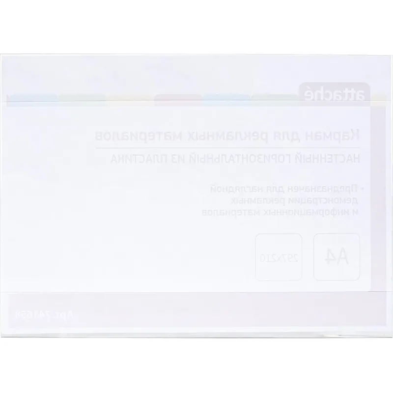 Карман настенный А4 горизонтальный пластиковый на скотче. Предназначен для размещения информации. Карман имеет одно отделение для размещения листов формата А4. Крепление к поверхности осуществляется при помощи двухсторонней клейкой ленты. Поставляется в защитной пленке. В одной упаковке товара содержится 1 изделие.