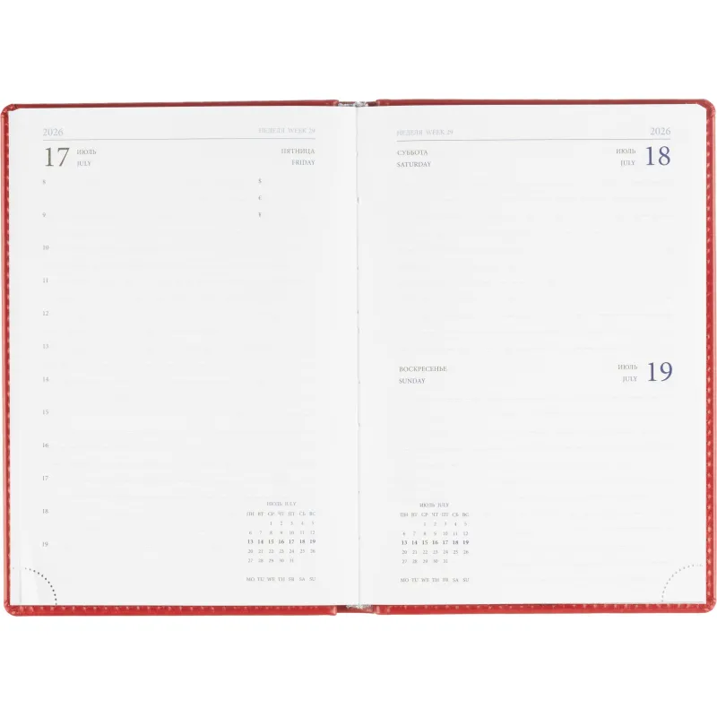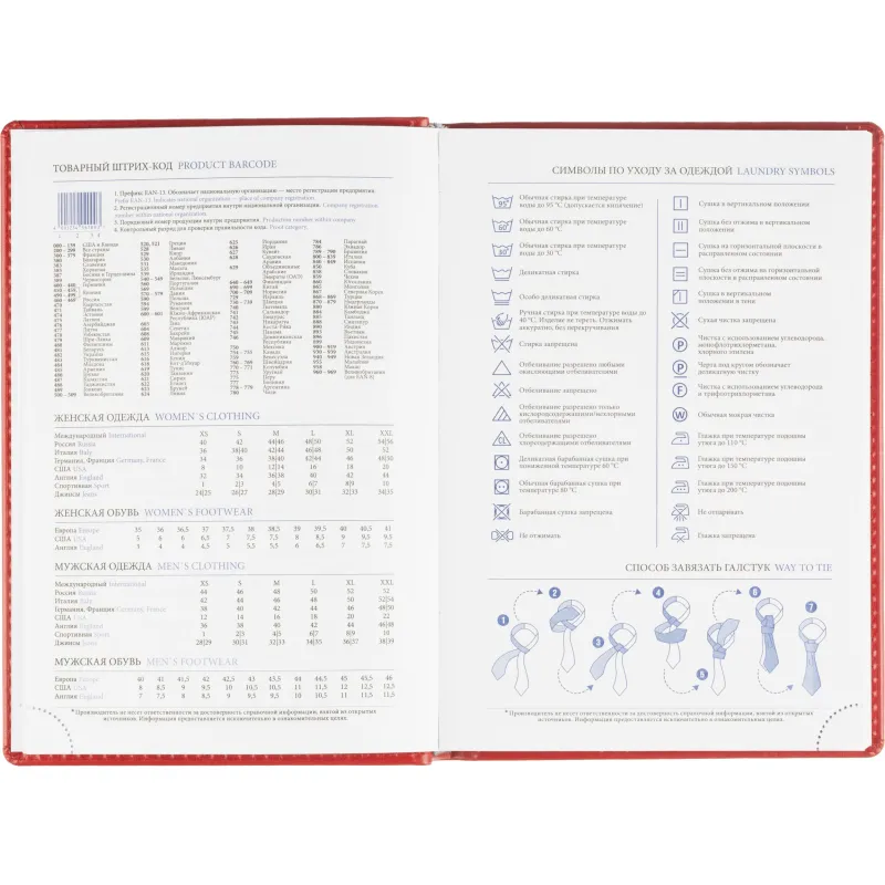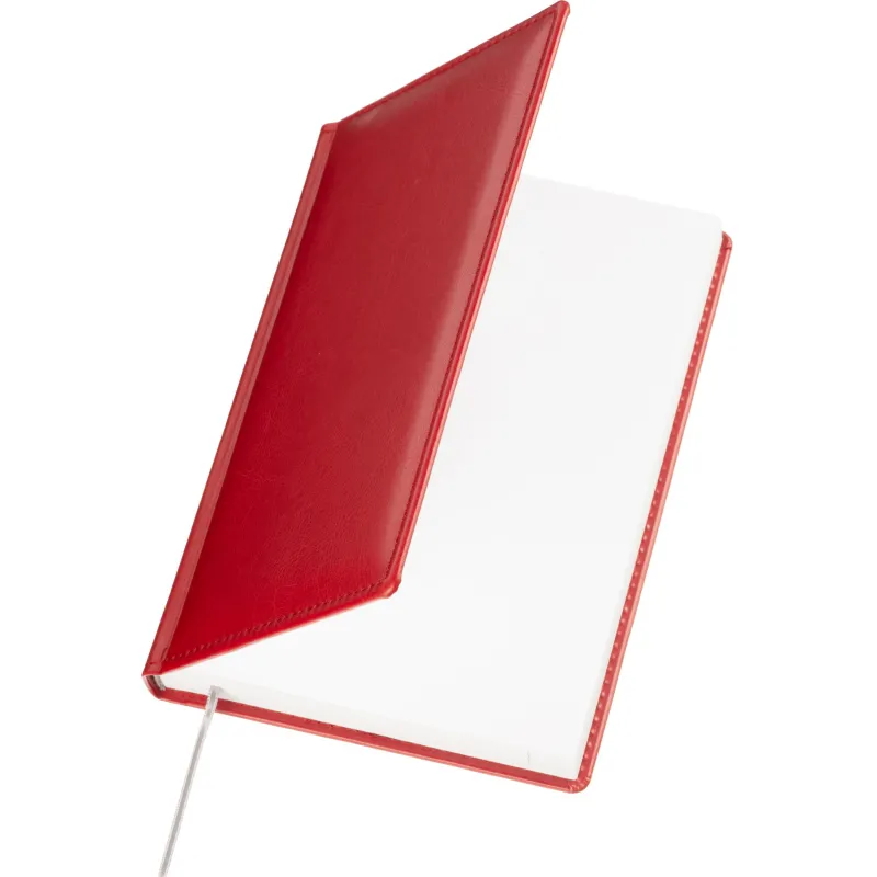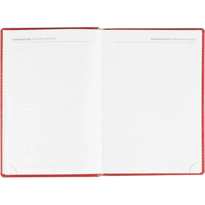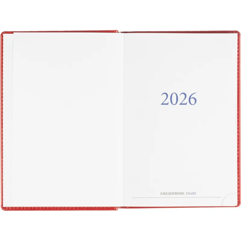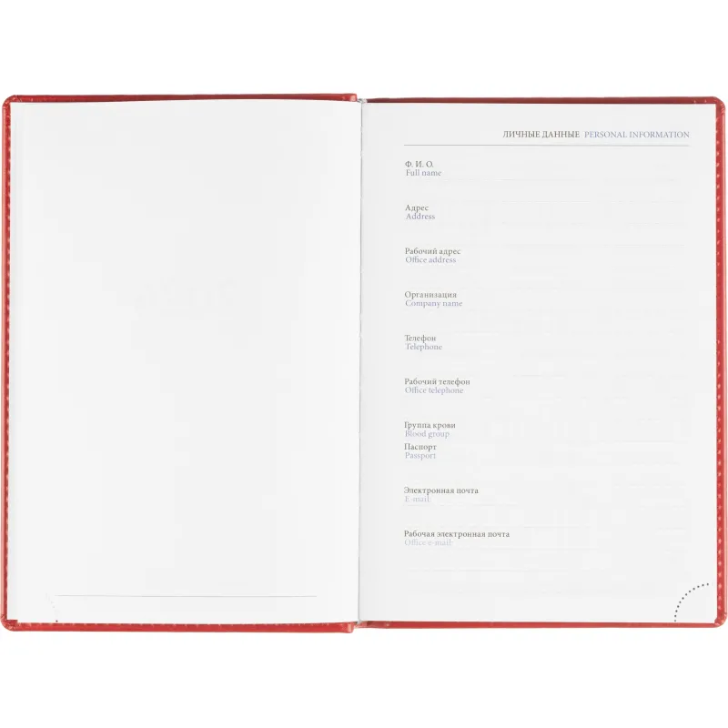 Данный ежедневник имеет формат A5, содержит 176 листов. Твёрдая обложка с поролоном, выполненная из высококачественной искуственной кожи красного цвета, придаёт изделию элегантный и профессиональный вид. Страницы выполнены из белой офсетной бумаги плотностью 70 г/кв.м. Дизайн обложки: универсальный.