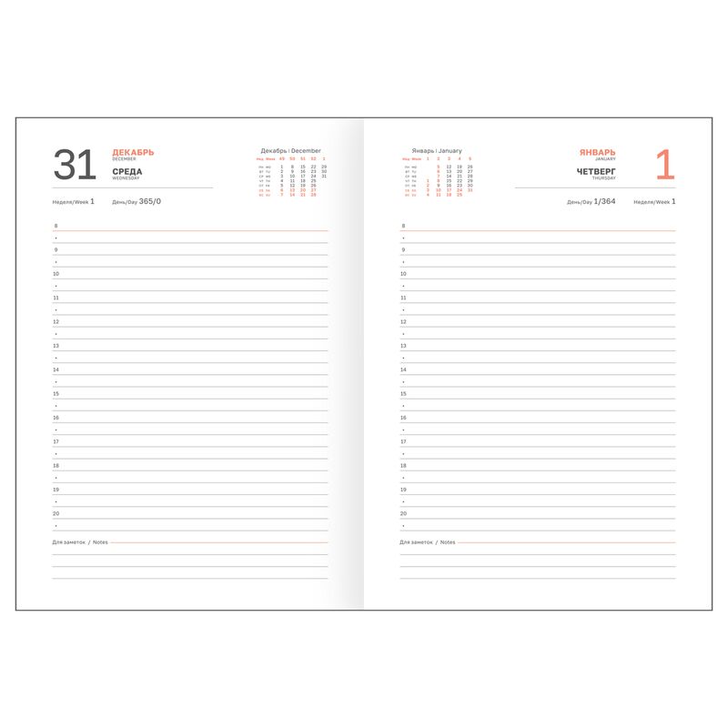 Датированный ежедневник на 2026 год BG серии "Ariane" формата А5 с обложкой из балакрона с поролоновой прослойкой идеален для ежедневного использования. Внутренний блок состоит из 176 листов белой офсетной бумаги плотностью 70 г/м2 с пантонной печатью в 2