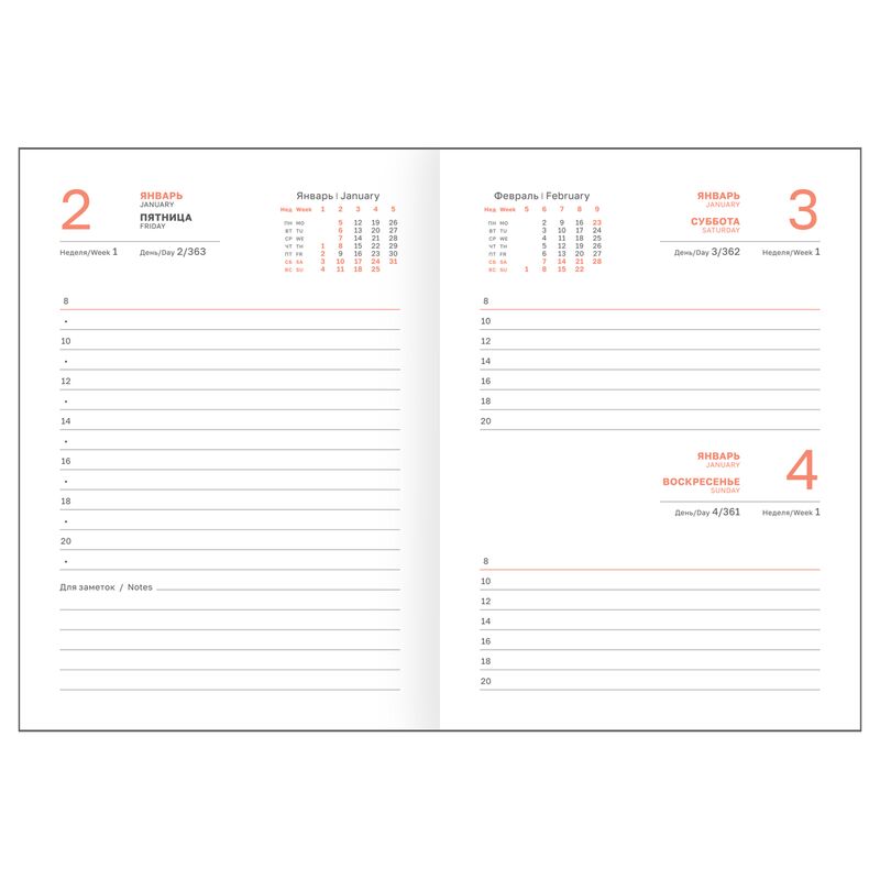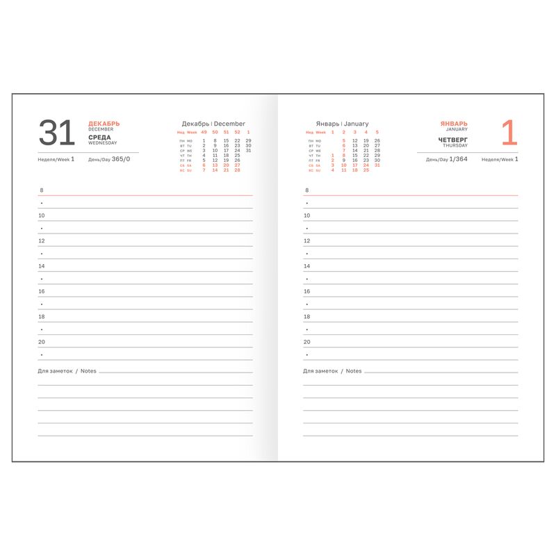 Датированный ежедневник на 2026 год BG серии "Ariane" формата А6 с обложкой из балакрона с поролоновой прослойкой идеален для ежедневного использования. Внутренний блок состоит из 176 листов белой офсетной бумаги плотностью 70 г/м2 с пантонной печатью в 2