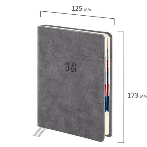 Ежедневник датированный 2026 B6 125х173 мм, GALANT "Vivid", под кожу, серый, 170228