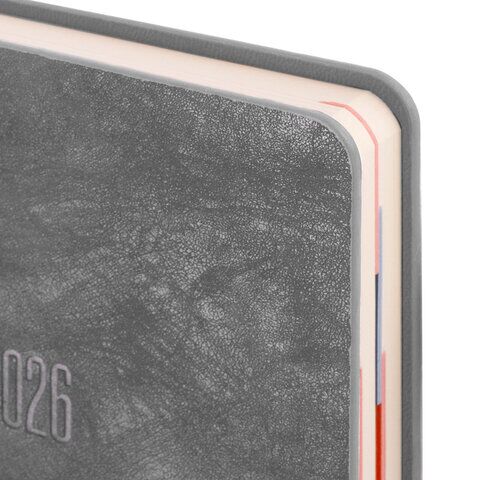 Ежедневник датированный 2026г., А6, 184л., кожзам, Berlingo "Velvet", цветной срез, серый
