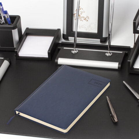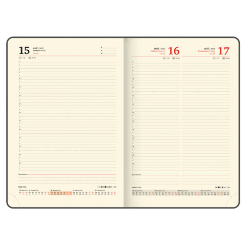 Датированный ежедневник BRAUBERG "Imperial" выполнен в классическом дизайне. Непревзойденное качество исполнения подчеркивает солидность владельца этого делового аксессуара. Внутренний блок включает 168 листов тонированной бумаги плотностью 70 г/м2. Кажда