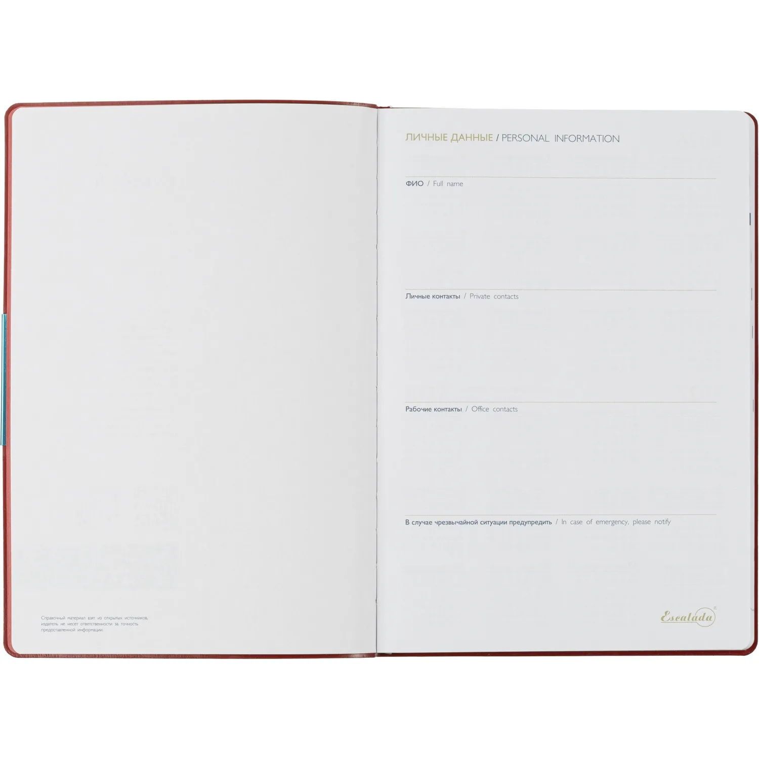 Обложка: мягкий переплёт, запаянный край, тиснение фольгой, металлический шильд по ,краю обложки, обстрочка по ,периметру ,&mdash,
