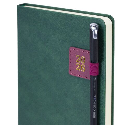 Ежедневник датированный 2026 А5 138х213 мм, BRAUBERG "Accent", под кожу, держатель, зеленый/бордо, 170208, купить в Грант СПБ