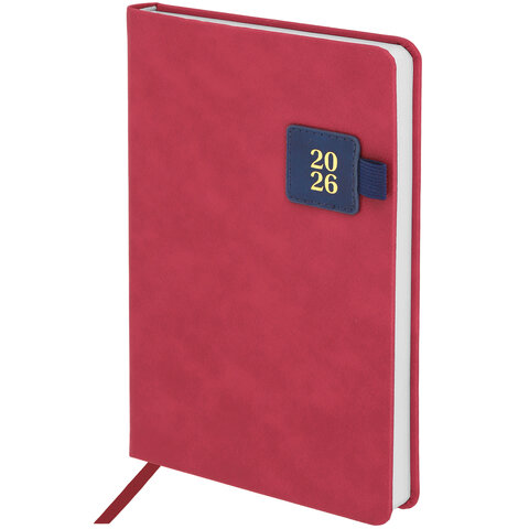 Ежедневник датированный 2026г., А6+, 176л., мягкий переплет, кожзам, BG "Waltz. Scarlet red", красный, цветной срез