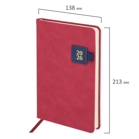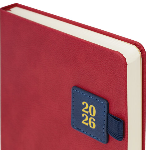 Ежедневник датированный 2026 А5 138х213 мм, BRAUBERG "Accent", под кожу, держатель, красный/синий, 170205