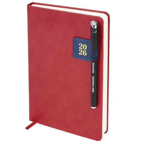 Ежедневник датированный 2026 А5 138х213 мм, BRAUBERG "Accent", под кожу, держатель, красный/синий, 170205, купить в Грант СПБ