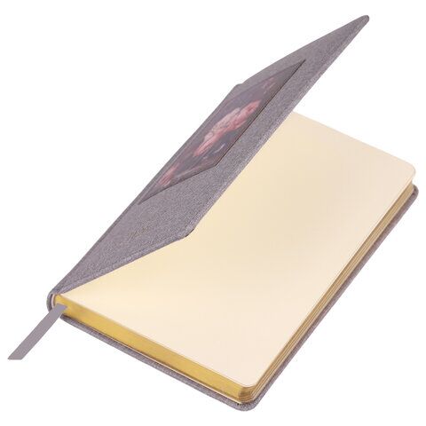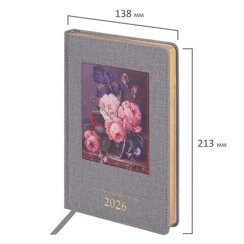 Ежедневник датированный 2026 А5 138х213 мм, BRAUBERG "ArtGallery", под кожу, нашивка, серый, 170225, купить в Грант СПБ