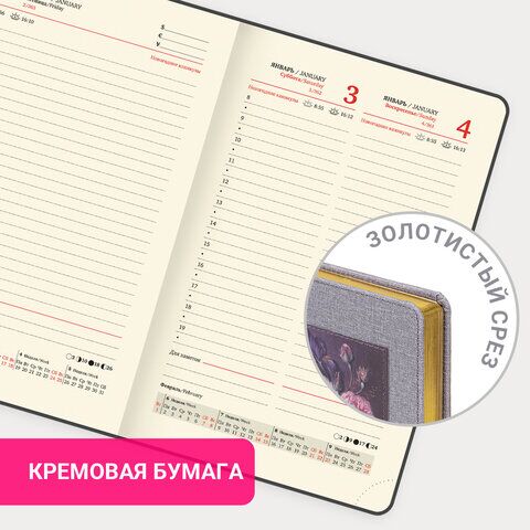 Ежедневник датированный BRAUBERG "ArtGallery" создан для тех, кому планирование дороже, чем импровизация. Внутренний блок включает 168 листов кремовой бумаги плотностью 70 г/м2. Каждая страничка имеет перфорированный угол. Благодаря стандартному формату А